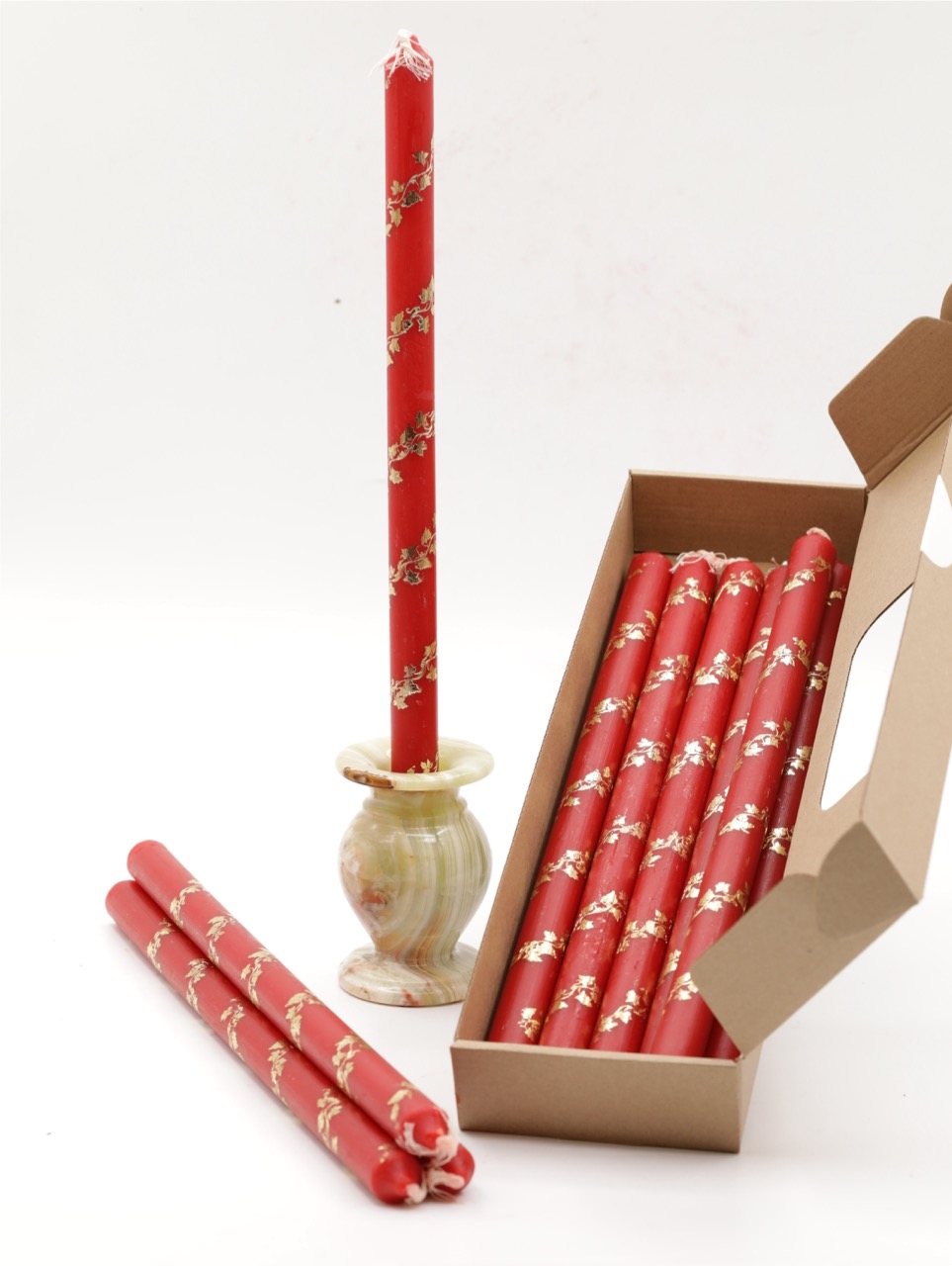 Предлагаем вашему вниманию свечи, Изготовленные по уникальной технологии. Изначально это простые цветные восковые свечи, которые после изготовления подвергаются дополнительной обработке - золочению в виде виноградной лозы, оплетающей свечу. Само золотое покрытие имеет толщину в несколько микрон, отчего полностью сгорает, не оставляя после себя твердых веществ. Выглядят данные свечи просто изумительно, блестят при свете пламени "играя" отблесками золота. Свечи прекрасно подойдут для любого праздника, а так же для праздничного богослужения. Свечи упакованы в коробочку, по 25 шт. Для покупки товара в нашем интернет-магазине выберите понравившийся товар и добавьте его в корзину. Далее перейдите в Корзину и нажмите на «Оформить заказ» или «Быстрый заказ». Когда оформляете быстрый заказ, напишите ФИО, телефон и e-mail. Вам перезвонит менеджер и уточнит условия заказа. По результатам разговора вам придет подтверждение оформления товара на почту или через СМС. Теперь останется только ждать доставки и радоваться новой покупке. Оформление заказа в стандартном режиме выглядит следующим образом. Заполняете полностью форму по последовательным этапам: адрес, способ доставки, оплаты, данные о себе. Советуем в комментарии к заказу написать информацию, которая поможет курьеру вас найти. Нажмите кнопку «Оформить заказ». Оплачивайте покупки удобным способом. В интернет-магазине доступно 3 варианта оплаты: Наличные при самовывозе или доставке курьером. Специалист свяжется с вами в день доставки, чтобы уточнить время и заранее подготовить сдачу с любой купюры. Вы подписываете товаросопроводительные документы, вносите денежные средства, получаете товар и чек. Безналичный расчет при самовывозе или оформлении в интернет-магазине: карты Visa и MasterCard. Чтобы оплатить покупку, система перенаправит вас на сервер системы ASSIST. Здесь нужно ввести номер карты, срок действия и имя держателя. Электронные системы при онлайн-заказе: PayPal, WebMoney и Яндекс.Деньги. Для совершения покупки система перенаправит вас на страницу платежного сервиса. Здесь необходимо заполнить форму по инструкции. Экономьте время на получении заказа. В интернет-магазине доступно 4 варианта доставки: Курьерская доставка работает с 9.00 до 19.00. Когда товар поступит на склад, курьерская служба свяжется для уточнения деталей. Специалист предложит выбрать удобное время доставки и уточнит адрес. Осмотрите упаковку на целостность и соответствие указанной комплектации. Самовывоз из магазина. Список торговых точек для выбора появится в корзине. Когда заказ поступит на склад, вам придет уведомление. Для получения заказа обратитесь к сотруднику в кассовой зоне и назовите номер. Постамат. Когда заказ поступит на точку, на ваш телефон или e-mail придет уникальный код. Заказ нужно оплатить в терминале постамата. Срок хранения — 3 дня. Почтовая доставка через почту России. Когда заказ придет в отделение, на ваш адрес придет извещение о посылке. Перед оплатой вы можете оценить состояние коробки: вес, целостность. Вскрывать коробку самостоятельно вы можете только после оплаты заказа. Один заказ может содержать не больше 10 позиций и его стоимость не должна превышать 100 000 р. Дополнительная вкладка, для размещения информации о магазине, доставке или любого другого важного контента. Поможет вам ответить на 
