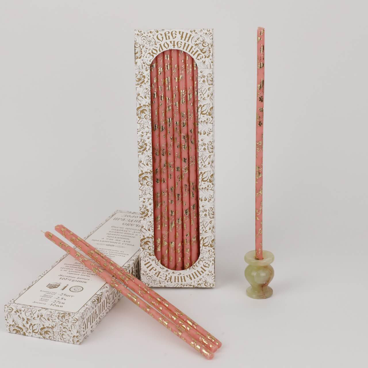 Свечи праздничные №40 (уп 40шт), РОЗОВЫЕ (Золотая лоза)