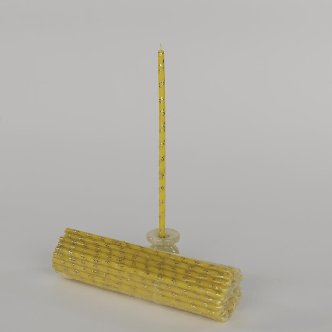 Предлагаем вашему вниманию свечи, Изготовленные по уникальной технологии. Изначально это простые цветные восковые свечи, которые после изготовления подвергаются дополнительной обработке - золочению в виде надписи "Христос Воскресе!", оплетающей свечу. Само золотое покрытие имеет толщину в несколько микрон, отчего полностью сгорает, не оставляя после себя твердых веществ. Выглядят данные свечи просто изумительно, блестят при свете пламени "играя" отблесками золота. Свечи прекрасно подойдут для светлого праздника Пасхи, а так же для пасхального богослужения. Свечи упакованы в пачку по 50шт Для покупки товара в нашем интернет-магазине выберите понравившийся товар и добавьте его в корзину. Далее перейдите в Корзину и нажмите на «Оформить заказ» или «Быстрый заказ». Когда оформляете быстрый заказ, напишите ФИО, телефон и e-mail. Вам перезвонит менеджер и уточнит условия заказа. По результатам разговора вам придет подтверждение оформления товара на почту или через СМС. Теперь останется только ждать доставки и радоваться новой покупке. Оформление заказа в стандартном режиме выглядит следующим образом. Заполняете полностью форму по последовательным этапам: адрес, способ доставки, оплаты, данные о себе. Советуем в комментарии к заказу написать информацию, которая поможет курьеру вас найти. Нажмите кнопку «Оформить заказ». Оплачивайте покупки удобным способом. В интернет-магазине доступно 3 варианта оплаты: Наличные при самовывозе или доставке курьером. Специалист свяжется с вами в день доставки, чтобы уточнить время и заранее подготовить сдачу с любой купюры. Вы подписываете товаросопроводительные документы, вносите денежные средства, получаете товар и чек. Безналичный расчет при самовывозе или оформлении в интернет-магазине: карты Visa и MasterCard. Чтобы оплатить покупку, система перенаправит вас на сервер системы ASSIST. Здесь нужно ввести номер карты, срок действия и имя держателя. Электронные системы при онлайн-заказе: PayPal, WebMoney и Яндекс.Деньги. Для совершения покупки система перенаправит вас на страницу платежного сервиса. Здесь необходимо заполнить форму по инструкции. Экономьте время на получении заказа. В интернет-магазине доступно 4 варианта доставки: Курьерская доставка работает с 9.00 до 19.00. Когда товар поступит на склад, курьерская служба свяжется для уточнения деталей. Специалист предложит выбрать удобное время доставки и уточнит адрес. Осмотрите упаковку на целостность и соответствие указанной комплектации. Самовывоз из магазина. Список торговых точек для выбора появится в корзине. Когда заказ поступит на склад, вам придет уведомление. Для получения заказа обратитесь к сотруднику в кассовой зоне и назовите номер. Постамат. Когда заказ поступит на точку, на ваш телефон или e-mail придет уникальный код. Заказ нужно оплатить в терминале постамата. Срок хранения — 3 дня. Почтовая доставка через почту России. Когда заказ придет в отделение, на ваш адрес придет извещение о посылке. Перед оплатой вы можете оценить состояние коробки: вес, целостность. Вскрывать коробку самостоятельно вы можете только после оплаты заказа. Один заказ может содержать не больше 10 позиций и его стоимость не должна превышать 100 000 р. Дополнительная вкладка, для размещения информации о магазине, доставке или любого другого важного контента. Поможет вам о