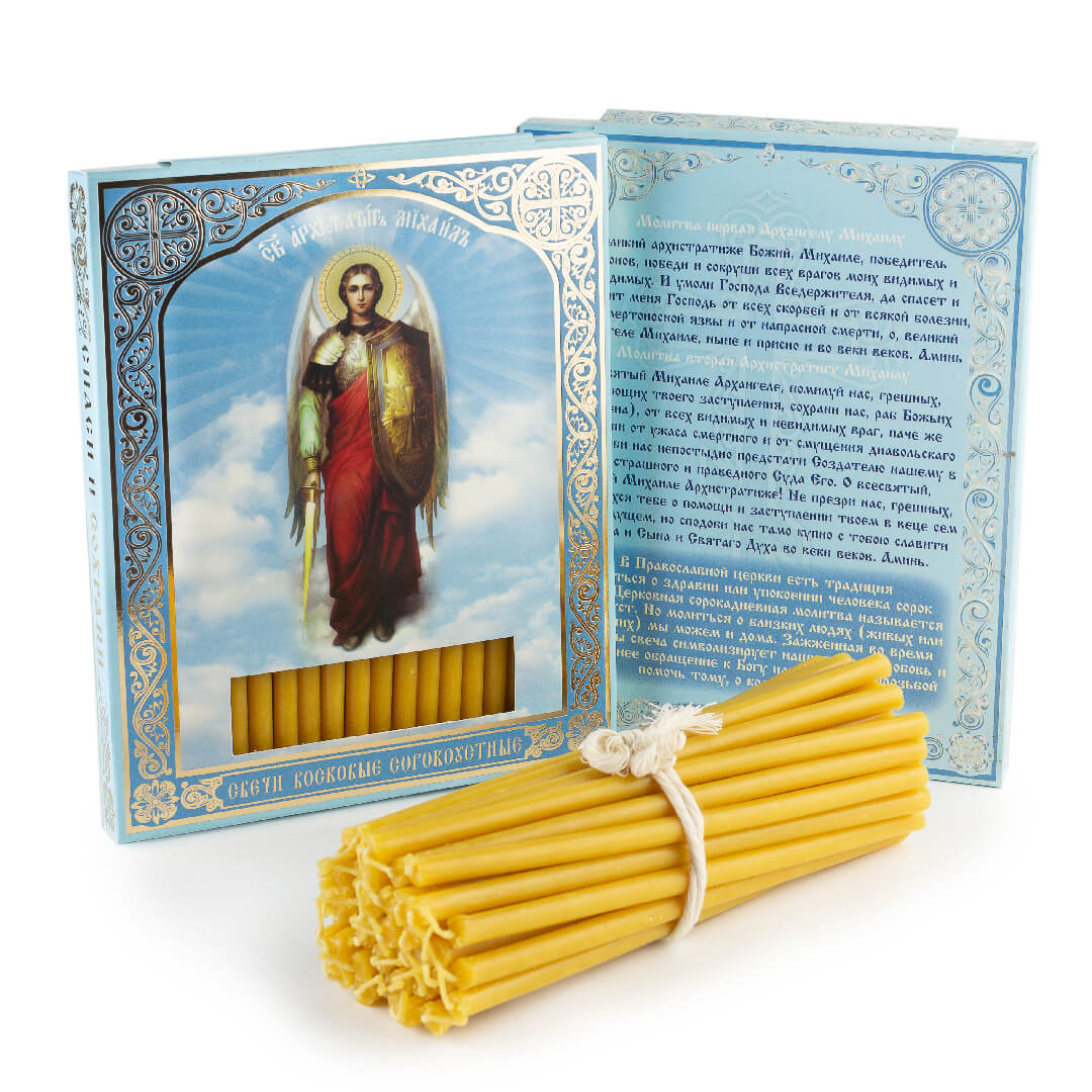 Свечи сорокоустные №50 (40шт, 19см, 1,7ч), Архангел Михаил