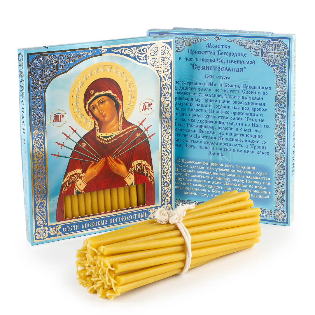 Свечи сорокоустные №50 (40шт, 19см, 1,7ч), Семистрельная