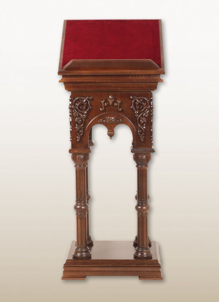 Аналой № 212 представляет собой высокий столик с косым верхом. На христианский аналой разрешено установить икону или книгу для чтения. Церковный и одновременно с этим загадочный аналой будет главным атрибутом не только православного Храма, но и семейного молельного уголка. В торжественные церковные празднества на аналой вы можете установить икону с изображением святого и впоследствии совершения церковного праздничного таинства вынести в середину Церкви, в случае если аналой планируется использовать в Церкви. В нашем православном интернет магазине вы всегда сможете выбрать аналой для Церкви или дома.