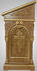 Храмовая мебель по сложности своего производства зачастую не уступает созданию иконостасов. Она должна в полной мере соответствовать своему назначению и быть максимально функциональной. Мебель в храме как таковая играет вспомогательную роль, служа как бы обрамлением внутреннего пространства, но никак не его украшением. Однако стоит учесть что, несмотря на второстепенную роль, мебель должна органично вписывать в окружающий интерьер становясь как бы его дополнением.