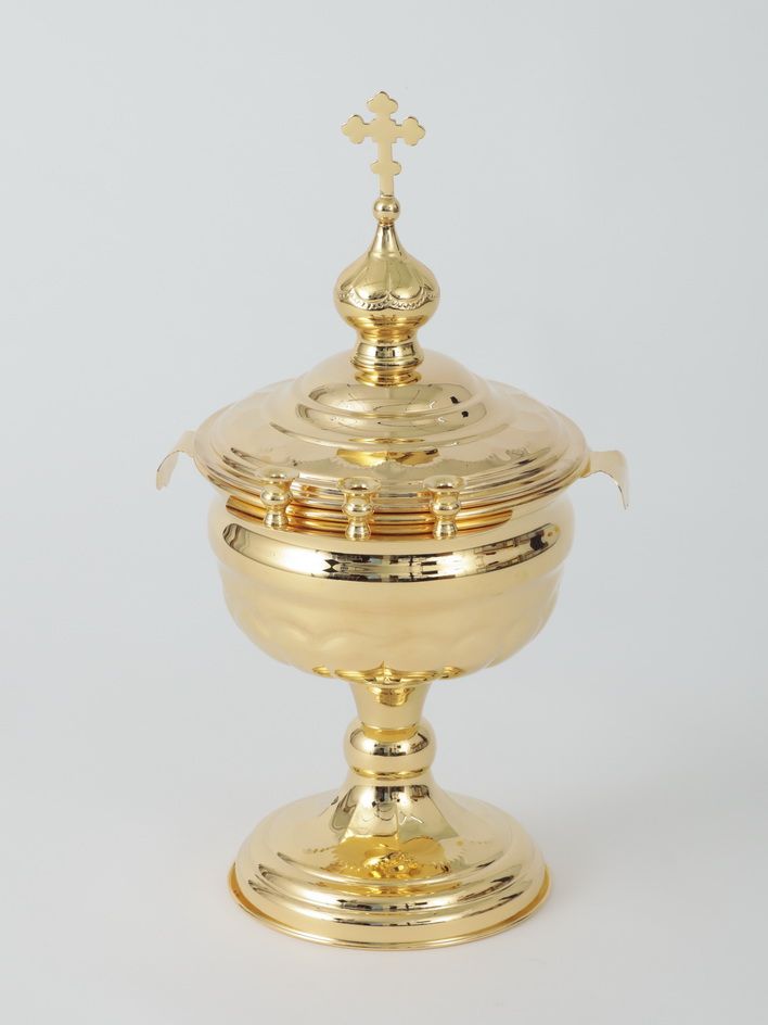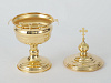 Водосвятная чаша от популярного производителя. Изделие изготовлено из одного из популярнейших драгоценных металлов – золота. Произведено в России! Чаша дополнительно украшена позолотой и чеканкой. Подарочная упаковка в комплекте.