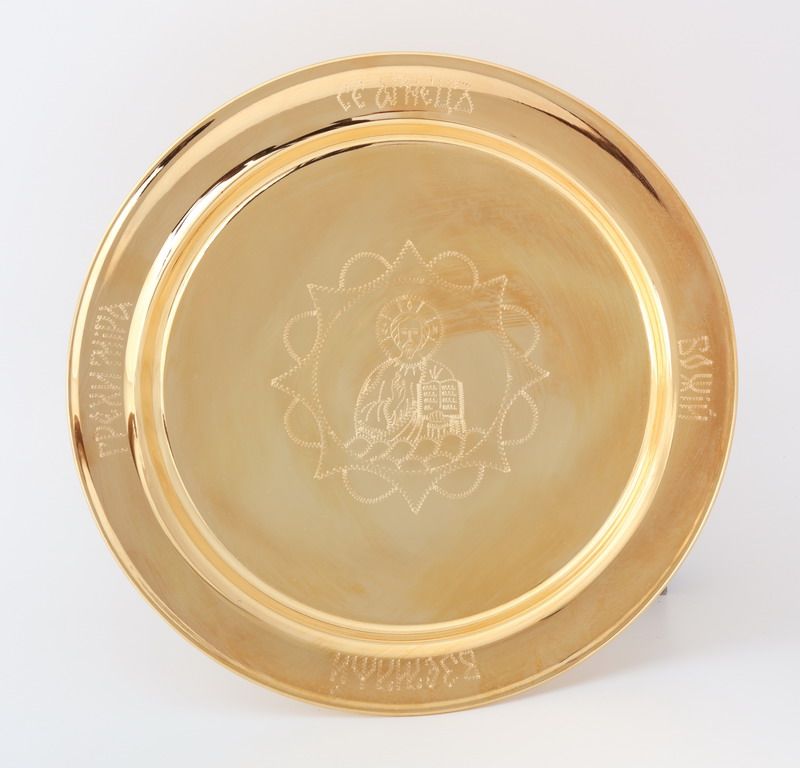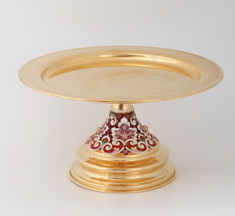 Дискос с поддискосником / ф280мм-конус потира 1, 5л / филигрань, эмаль, ручная гравировка / золочение