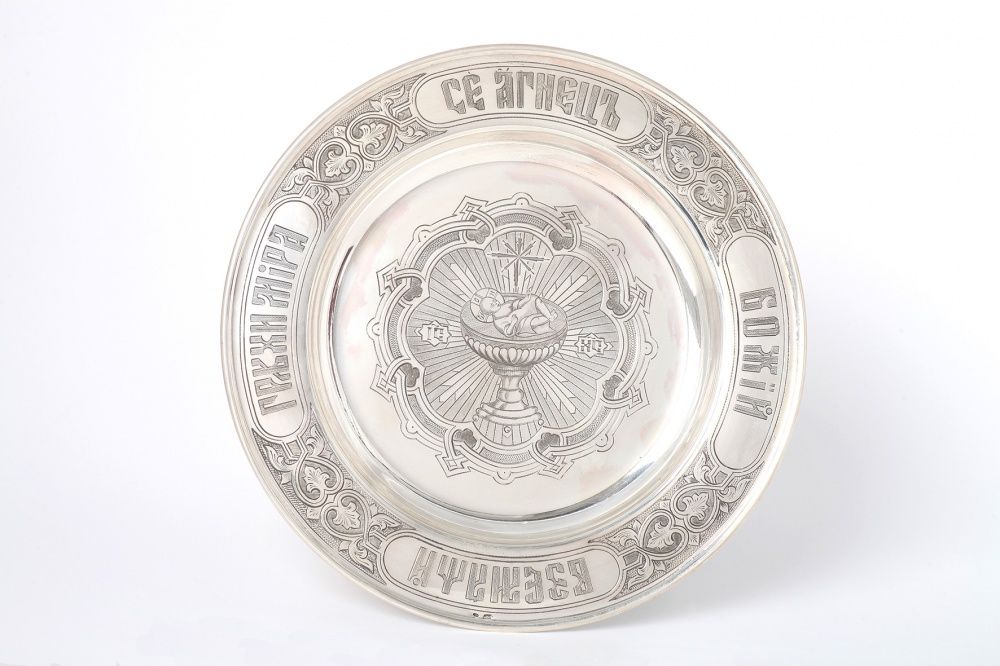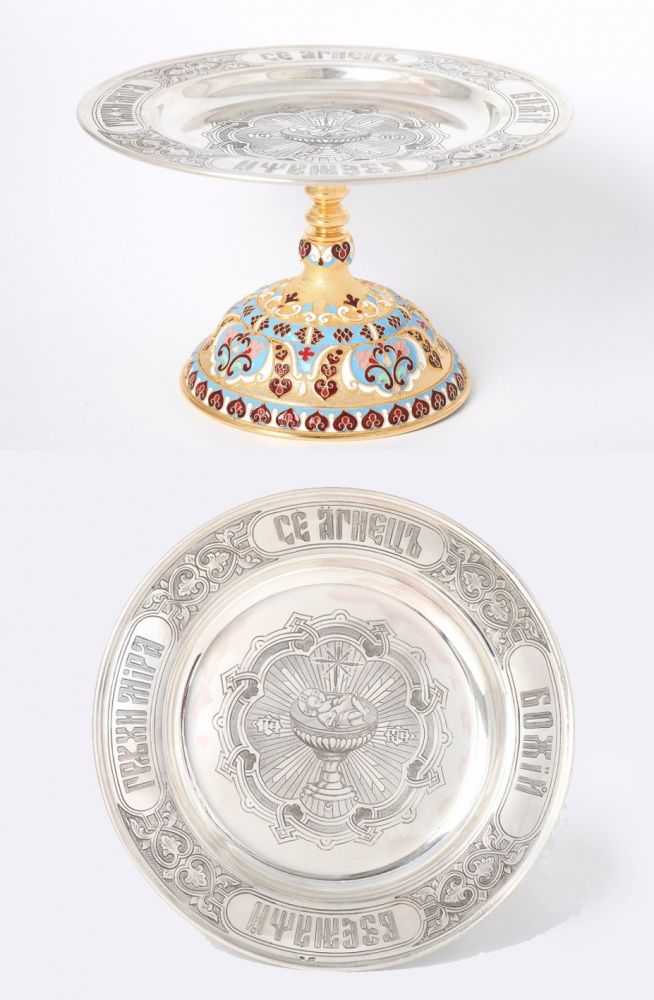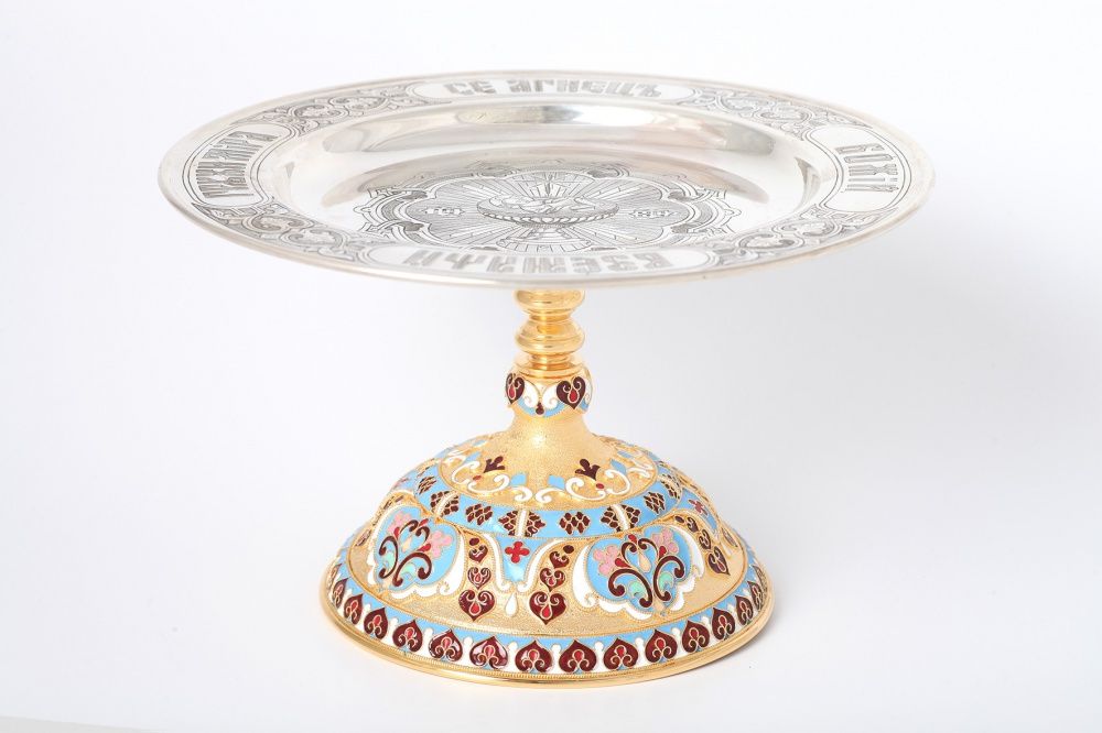 Дискос ручная гравировка / ф220мм / серебро, поддискосник медь / 0, 3л №1 / филигрань, эмаль / золочение / (УИН)