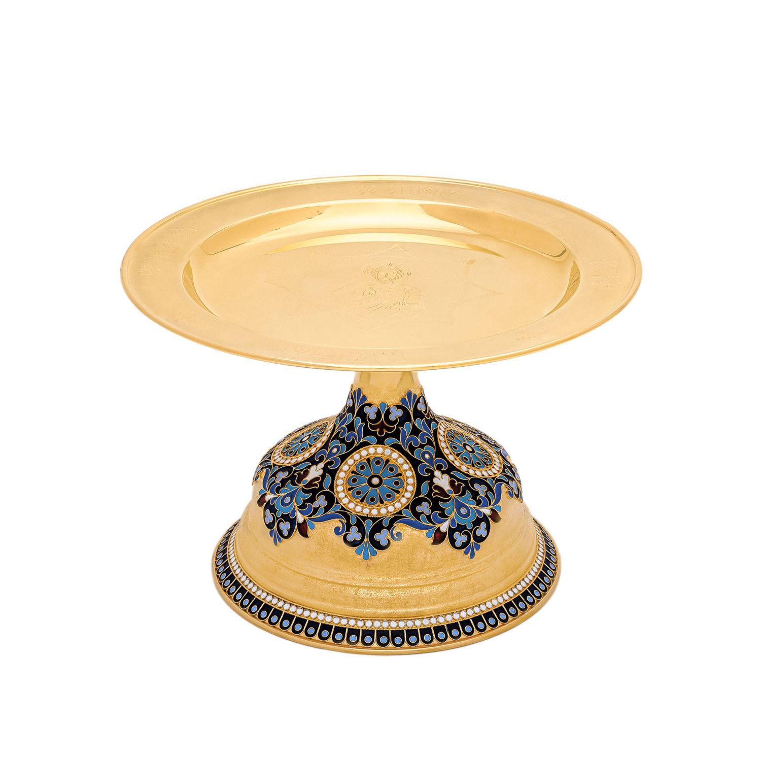 Дискос с поддискосником / ф240мм-песочные часы 1, 0л потира / филигрань, эмаль, ручная гравировка / золочение