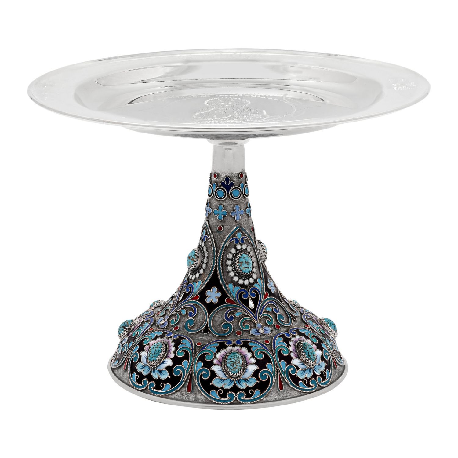 Дискос с поддискосником / ф240мм-потир 0, 5л колос №1 / филигрань, эмаль, роспись, ручная гравировка / серебрение с чернением