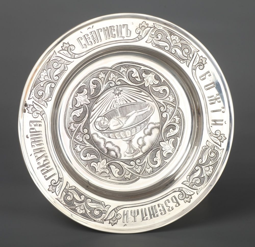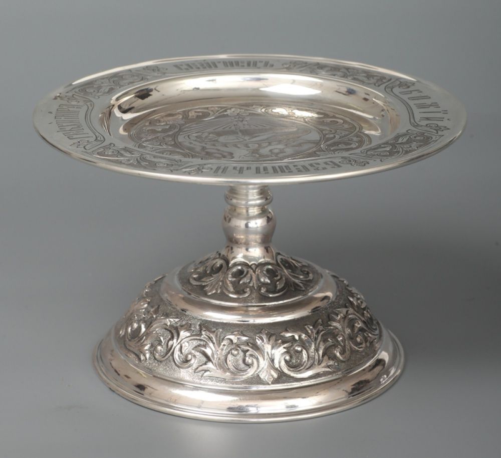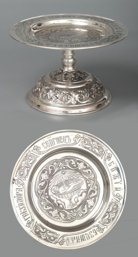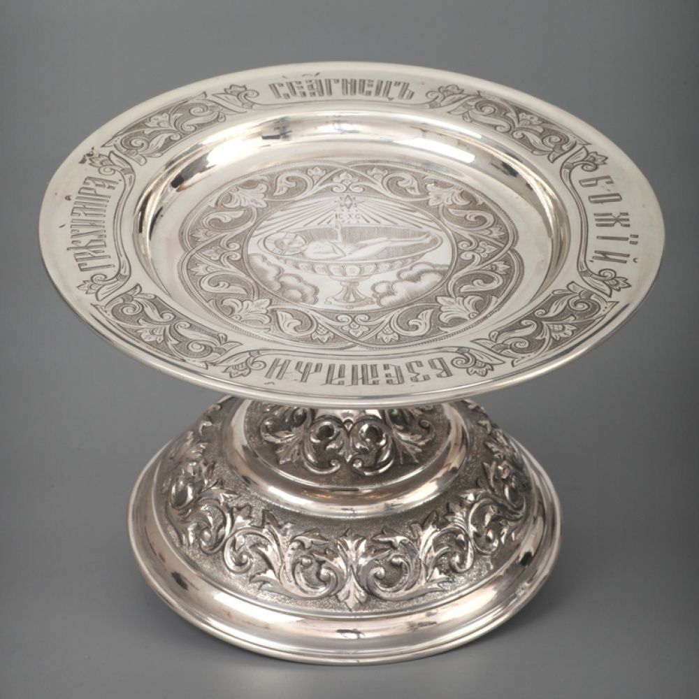 Дискос с поддискосником ручная гравировка, чеканка / ф180мм-потир 0, 3л№1 / серебро (УИН)