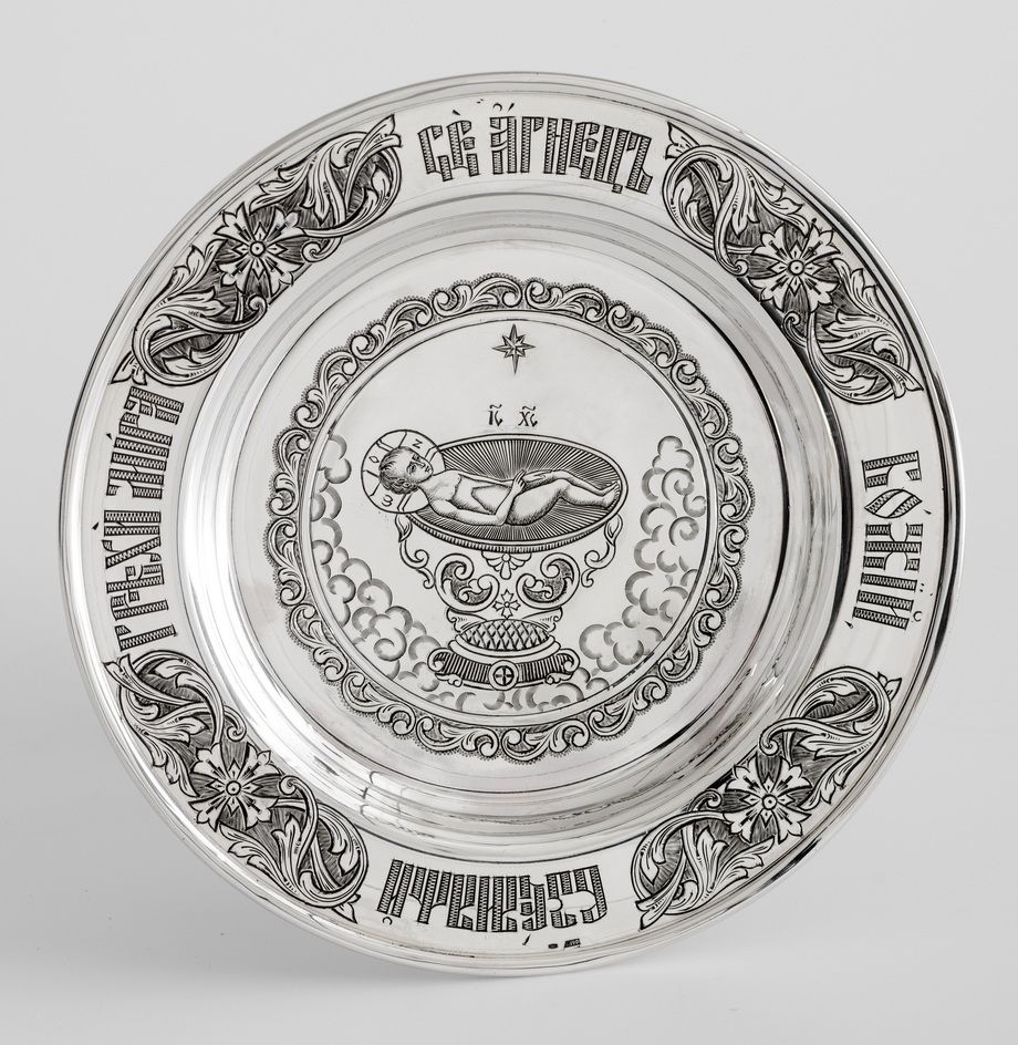 Дискос с поддискосником ручная гравировка, чеканка / ф180мм-потир 0, 3л№12 / серебро (УИН)
