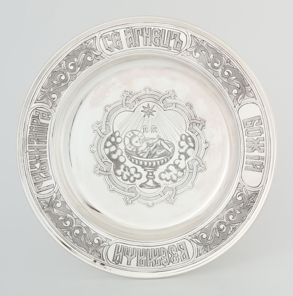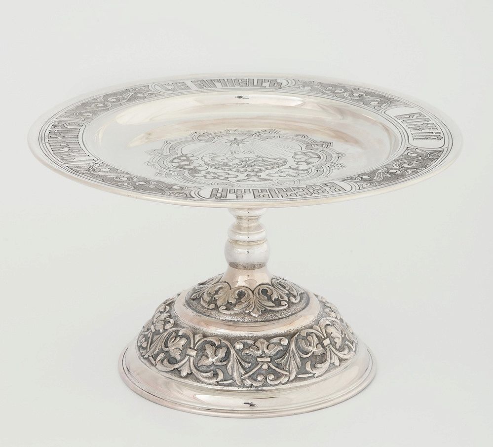 Дискос с поддискосником ручная гравировка, чеканка / ф220мм-потир 0, 3л№1 / серебро (УИН)