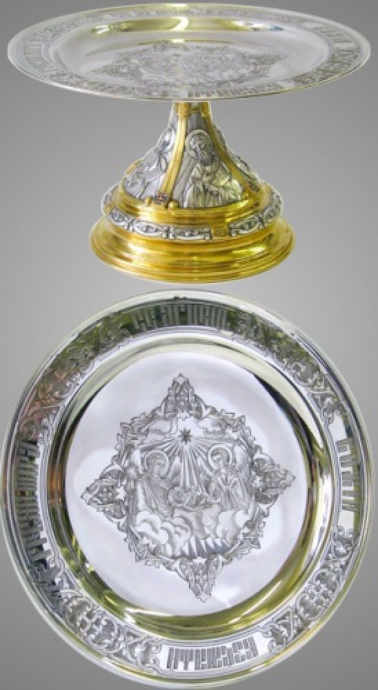 Дискос с поддискосником ручная гравировка, чеканка с пророками / ф240мм-конус потира 0, 5л / золочение / серебро (УИН)