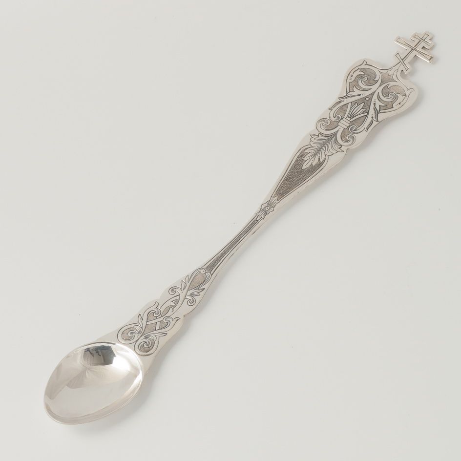 Лжица ручная гравировка, углубленная №4 серебро УИН