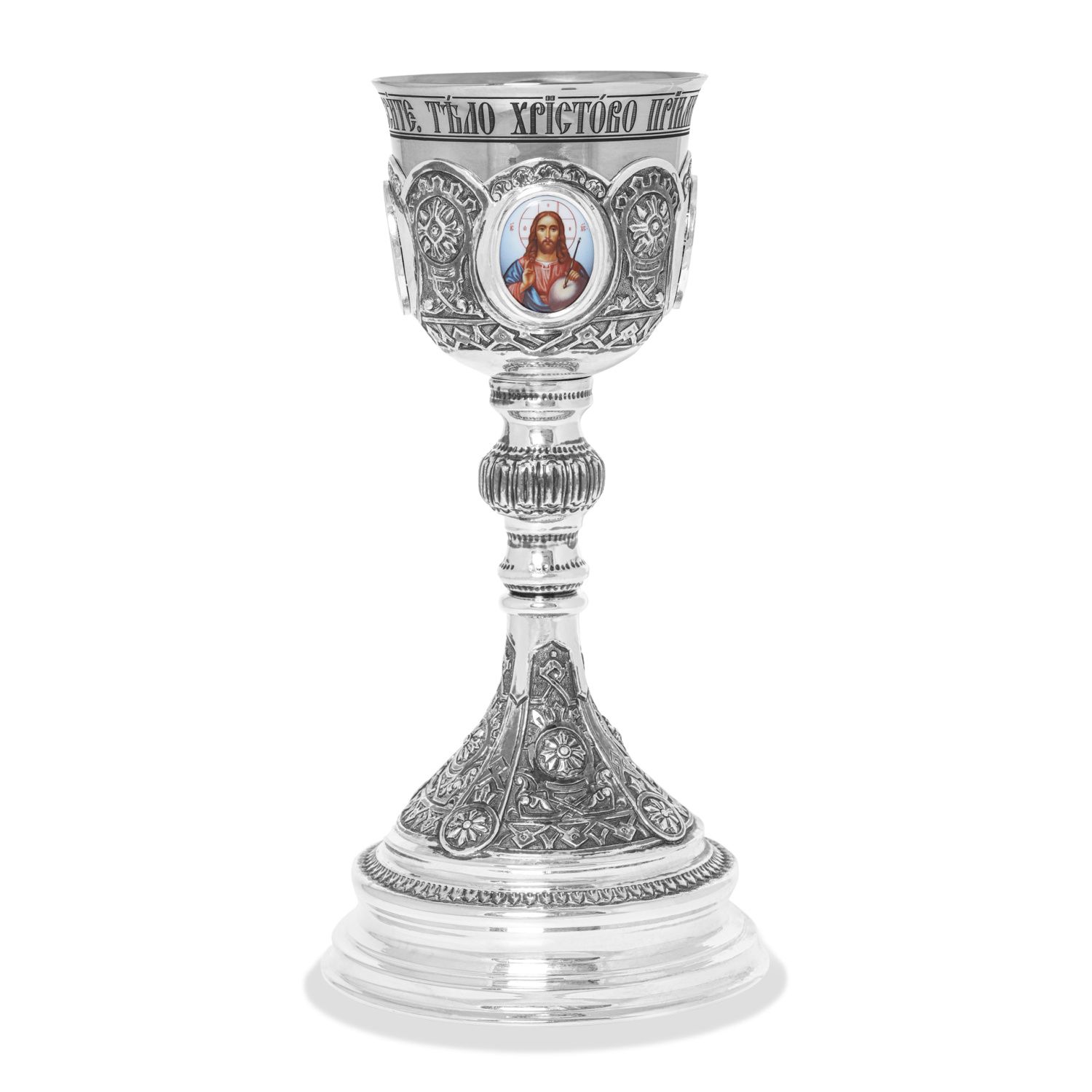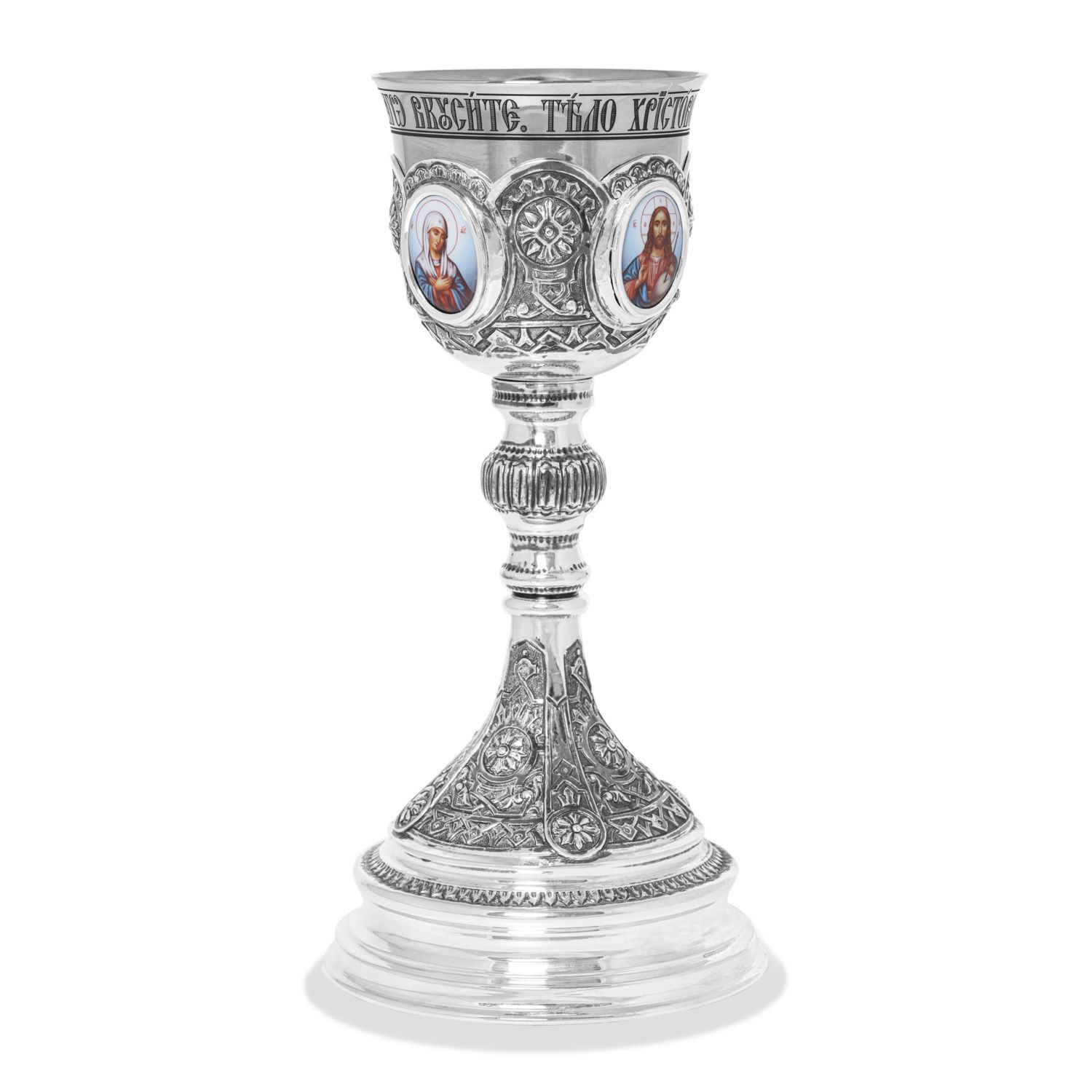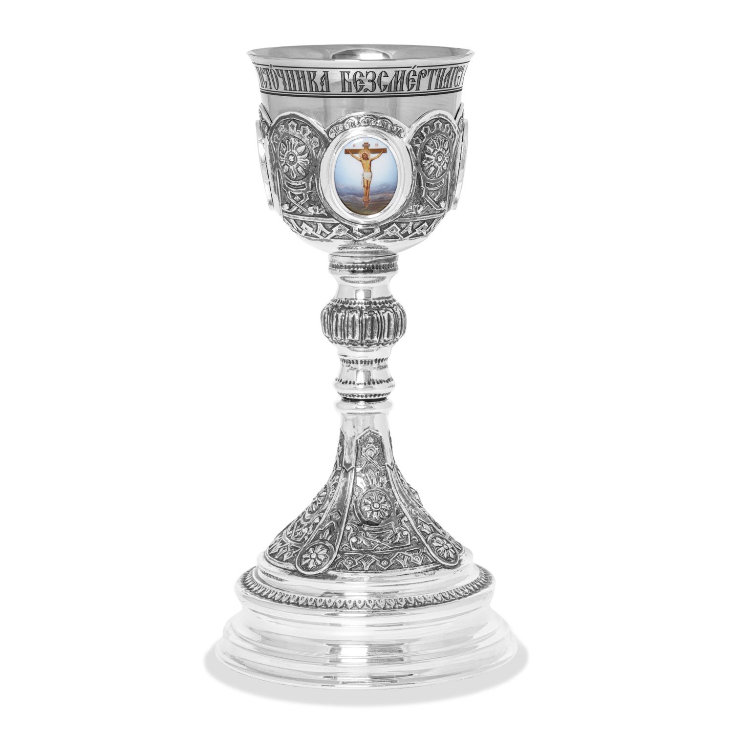 Потир 0.5л 4-деколи, чеканка / серебрение / нержавеющий стакан