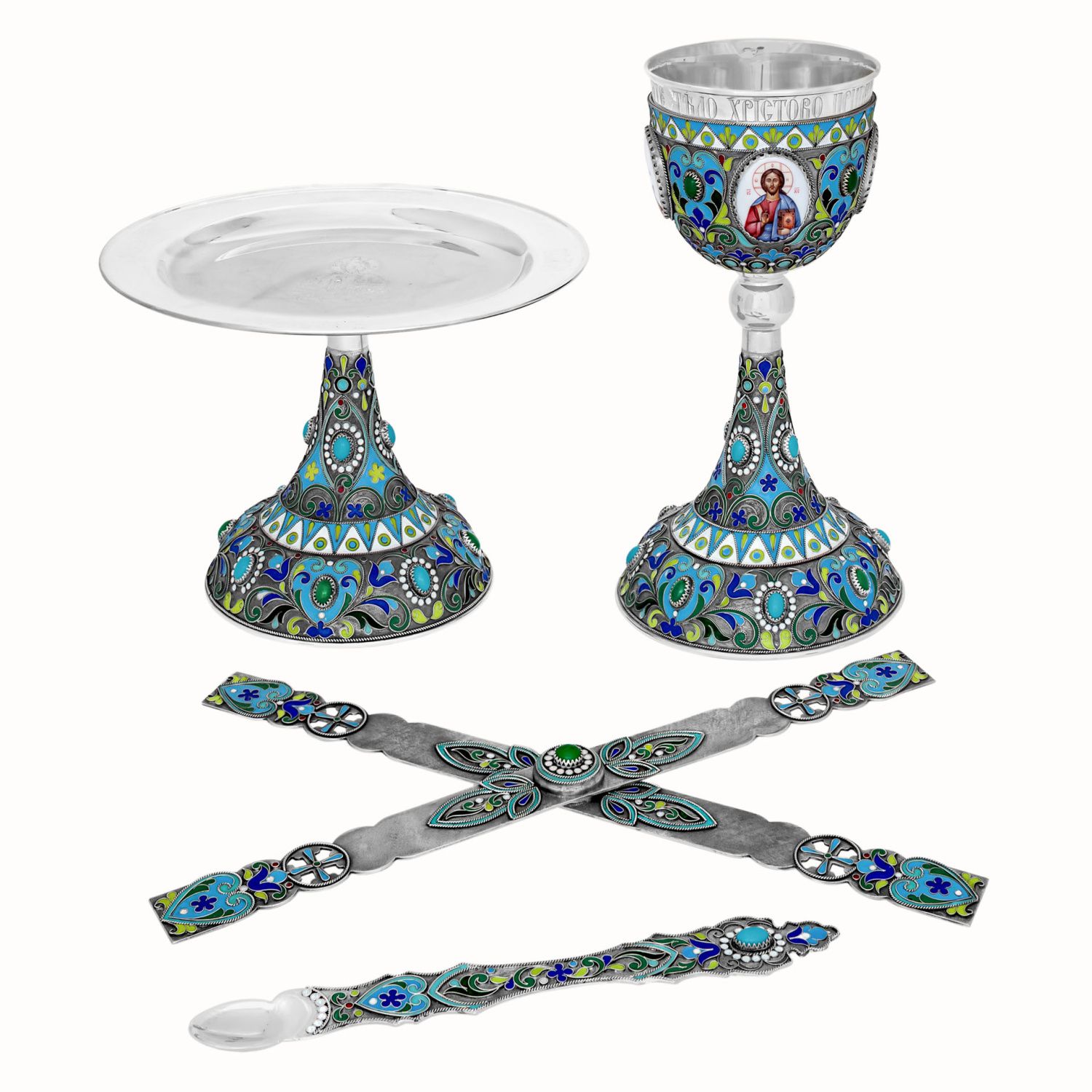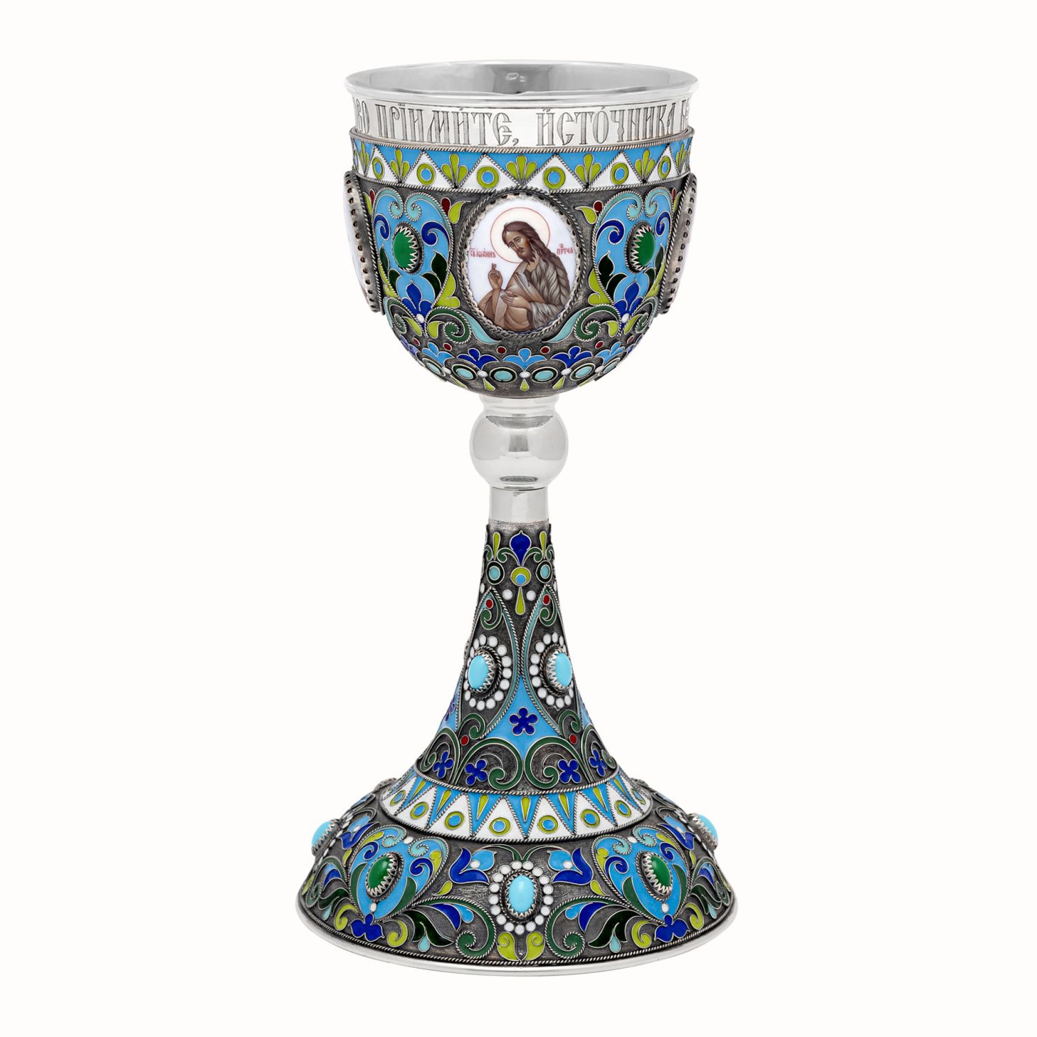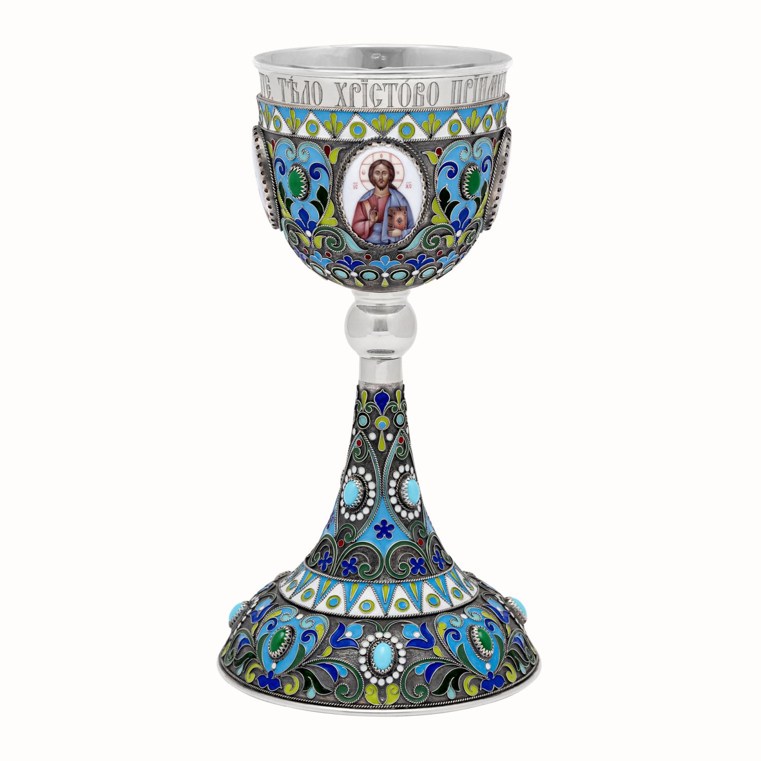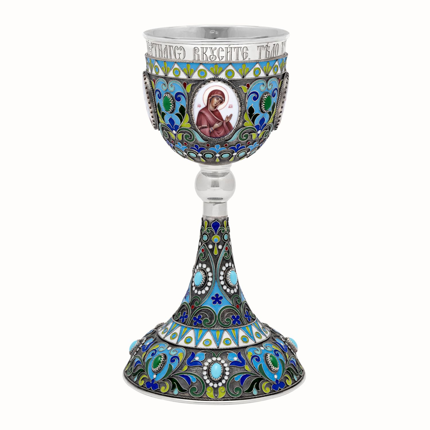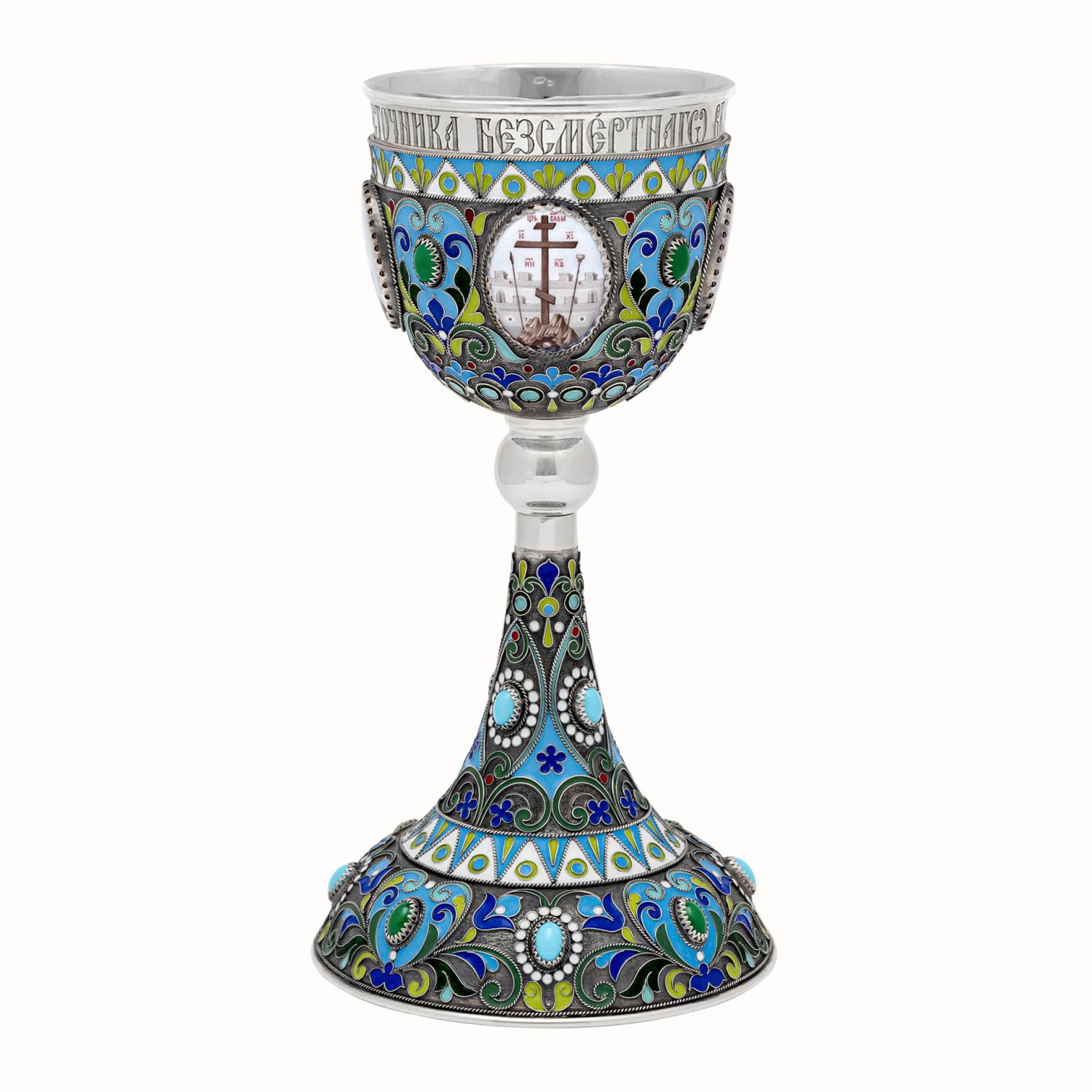Потир 0.5л 4-финифти, филигрань, эмаль колос №1 / серебрение с чернением / серебряный стакан (УИН)