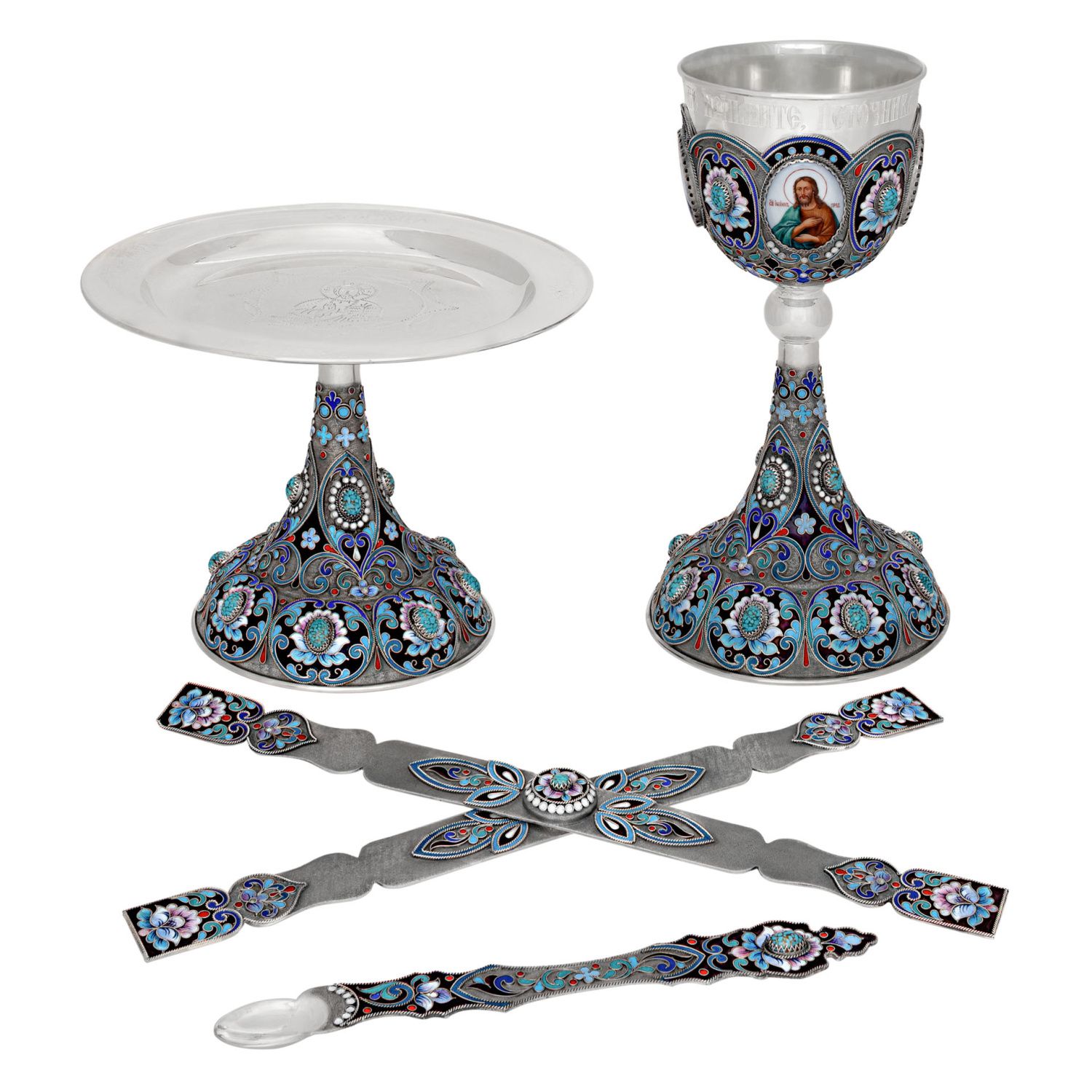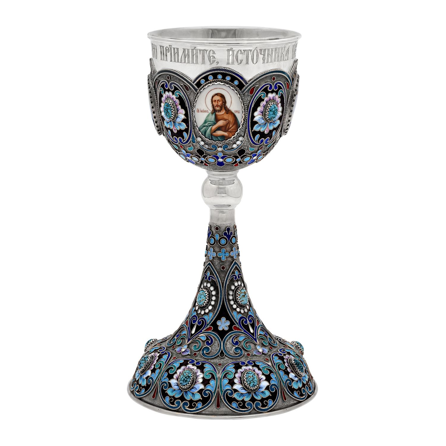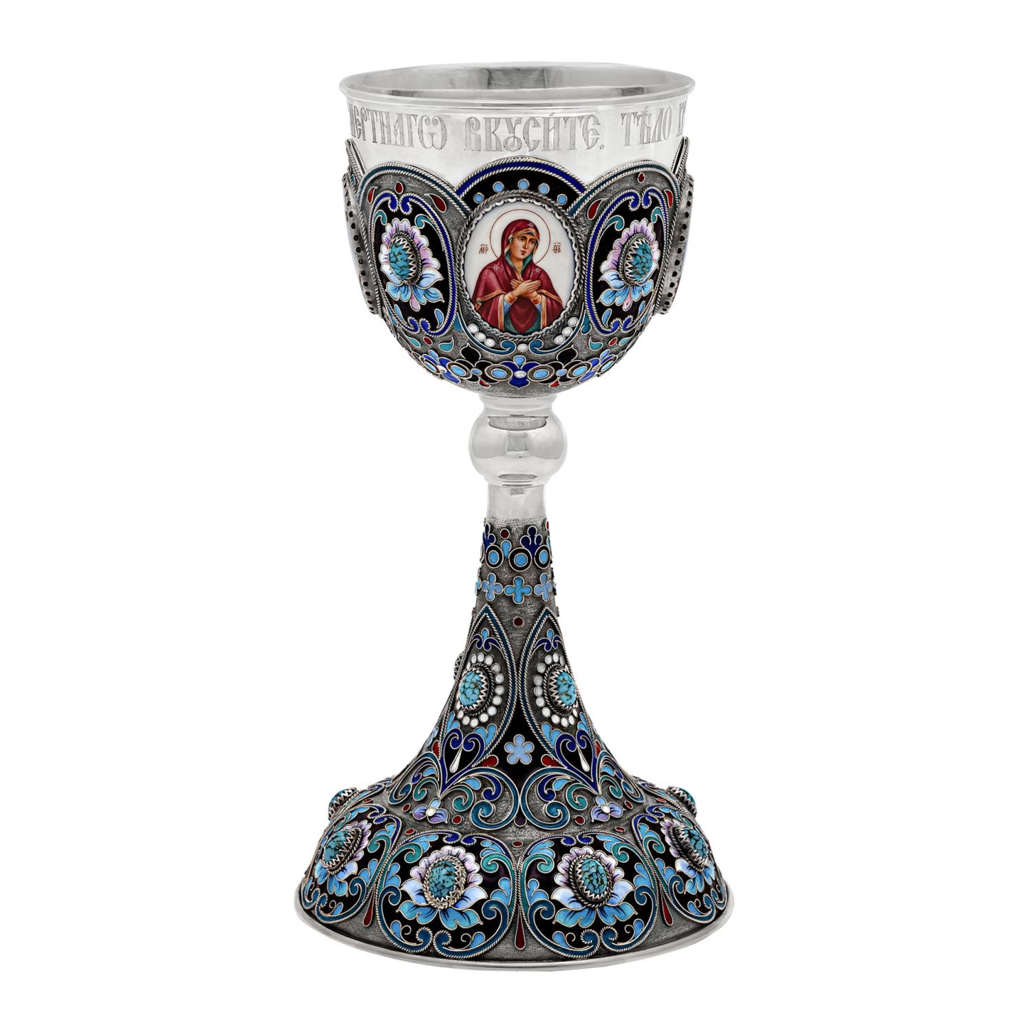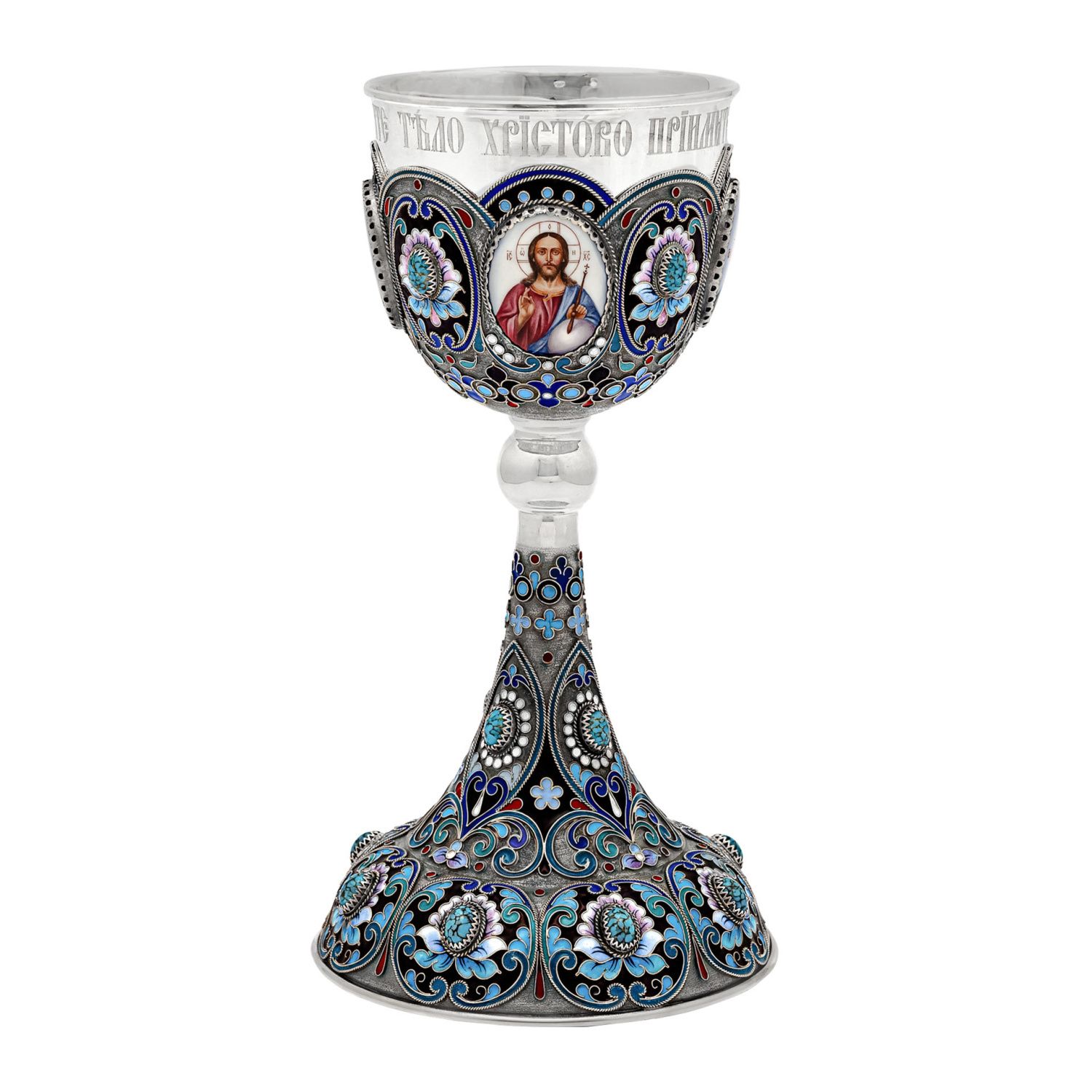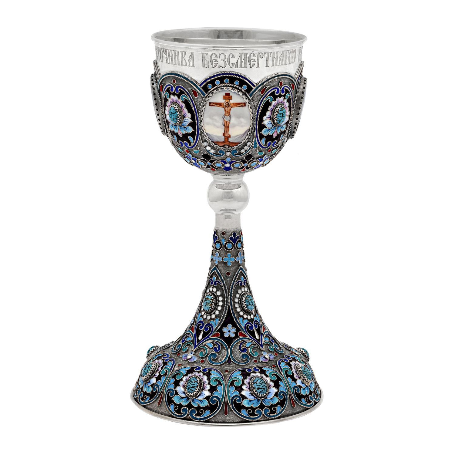 Потир 0.5л 4-финифти, филигрань, эмаль, роспись колос №1 / серебрение с чернением / серебряный стакан (УИН)
