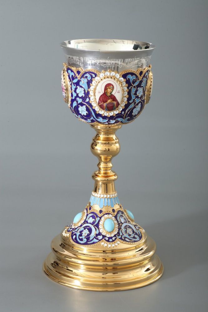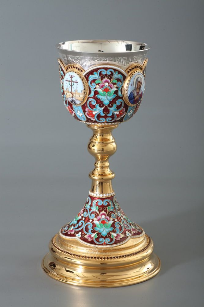 Потир 0.5л 4-финифти, филигрань, эмаль / золочение / серебряный стакан (УИН)