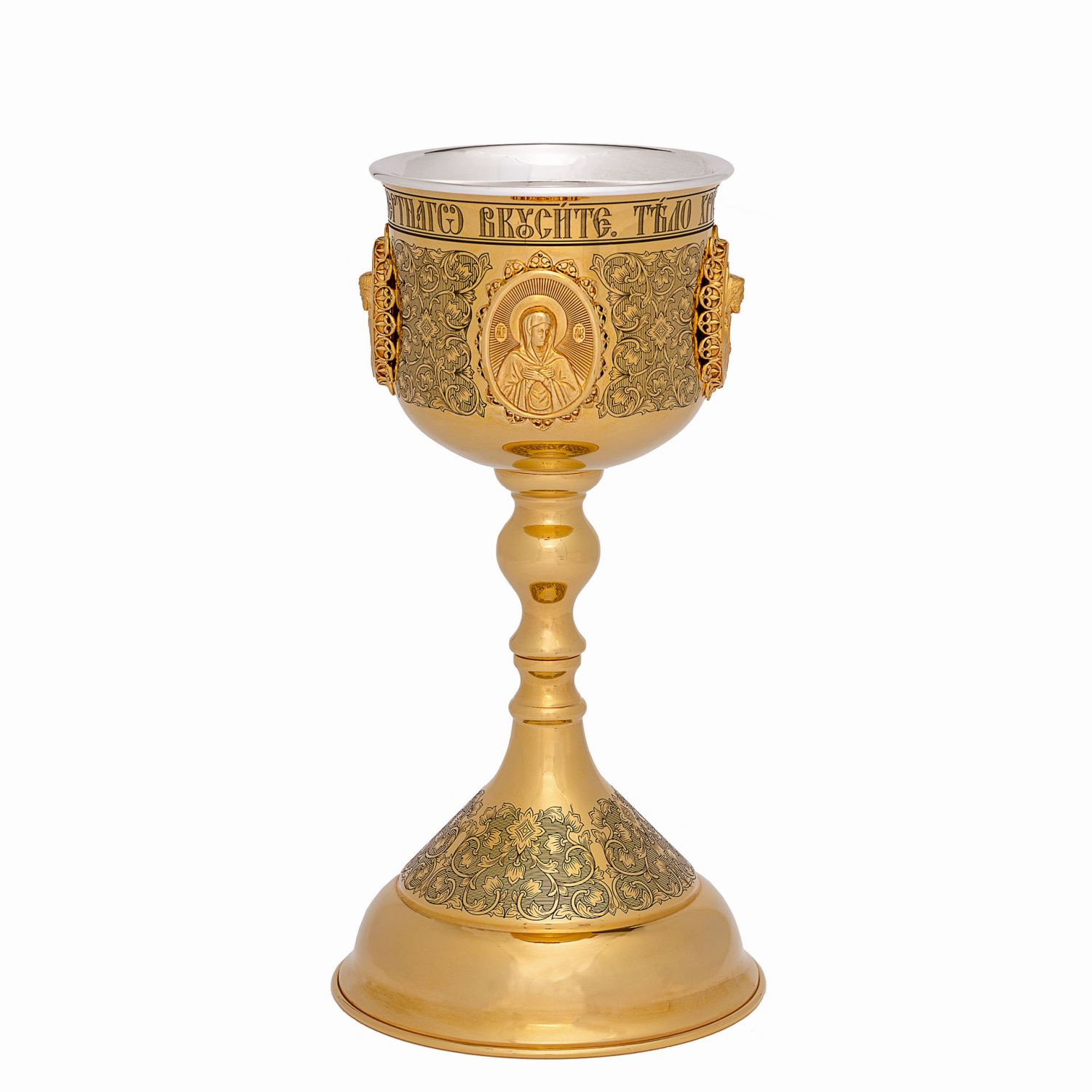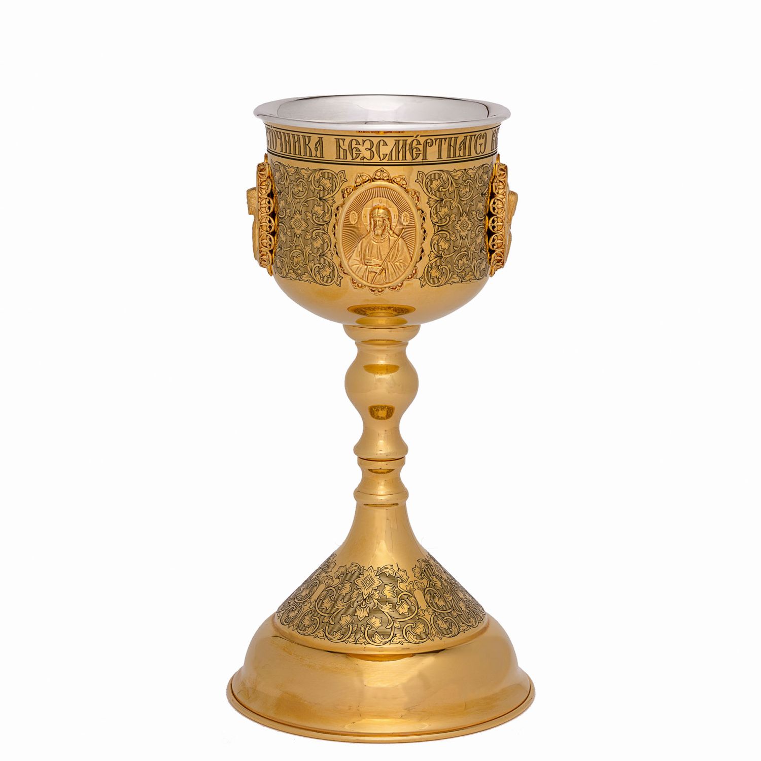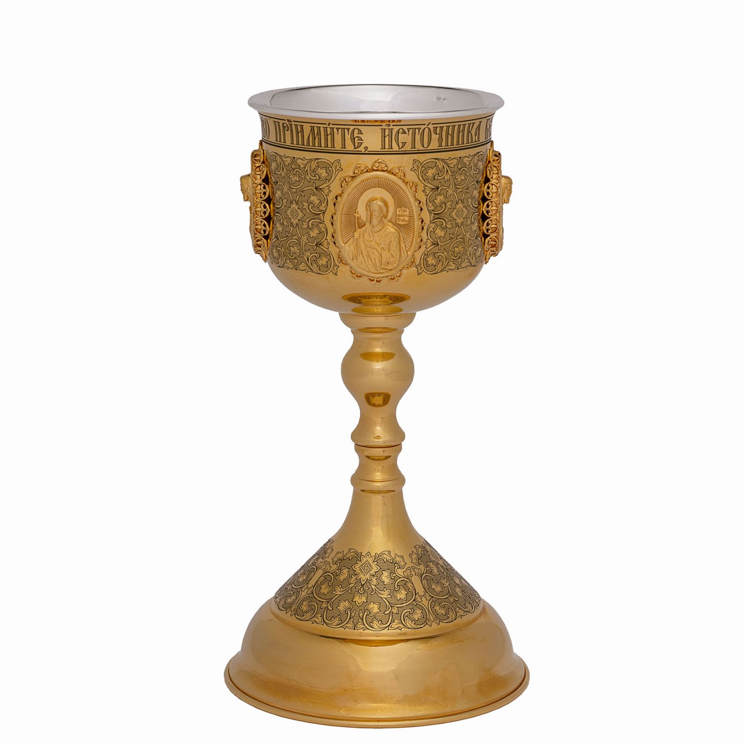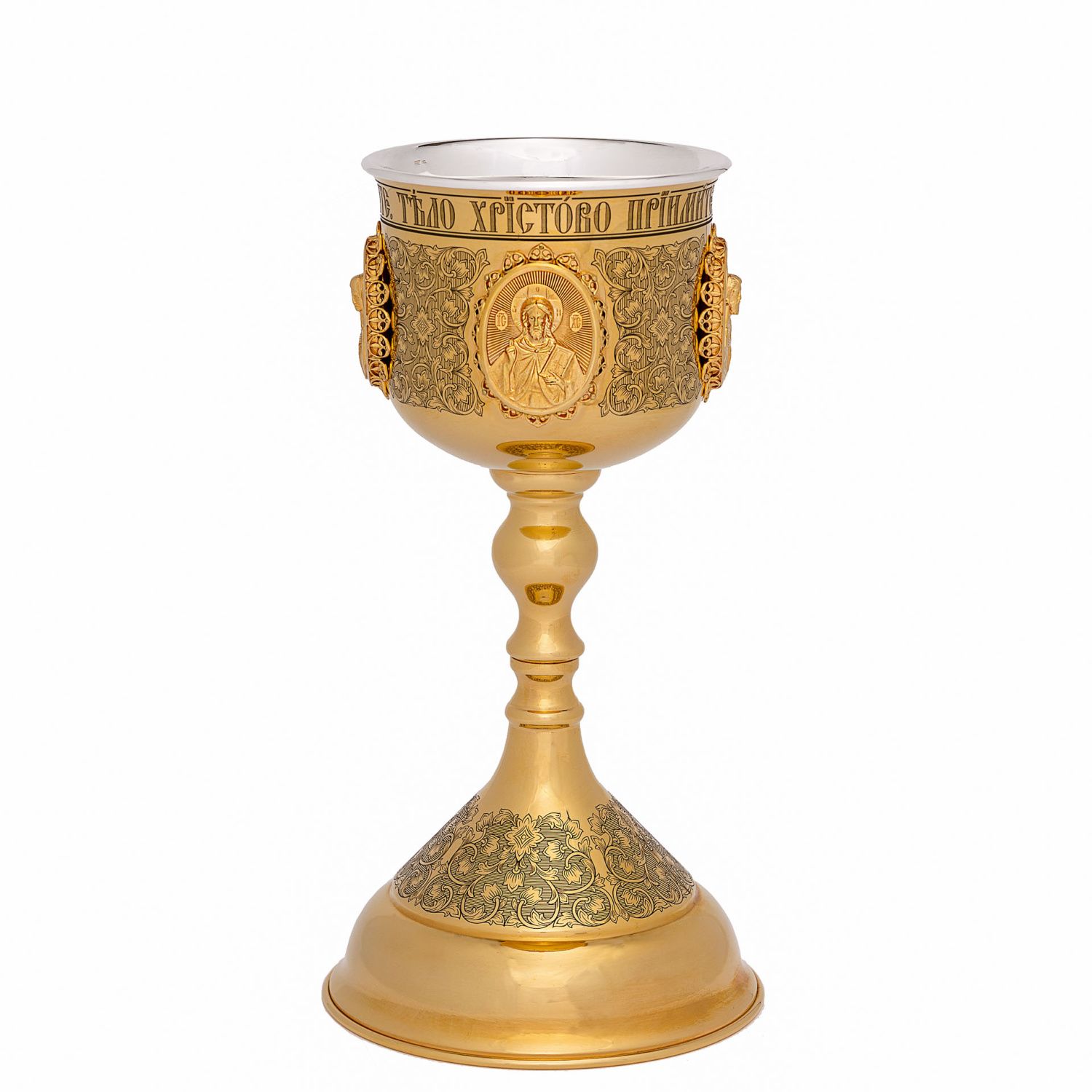 Потир 0.85л латунь лазерная гравировка №19 литьевые лики / золочение / серебряный вкладыш (УИН)