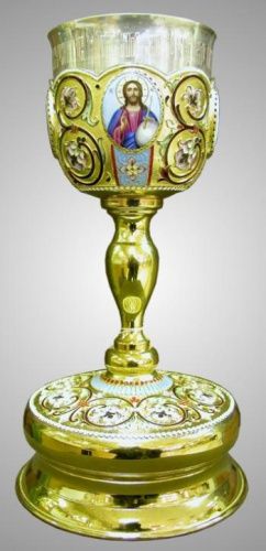 Потир 1, 0л 4-финифти, филигрань, эмаль, роспись / поддон старого образца / золочение / серебряный стакан (УИН)