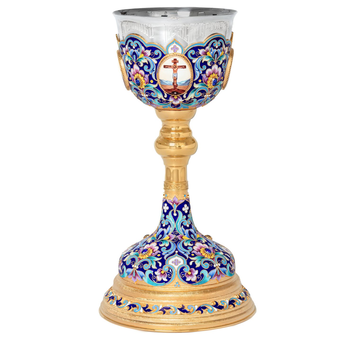Потир 1.0л 4-финифти, филигрань, эмаль, роспись / песочные часы / золочение / серебряный стакан (УИН)