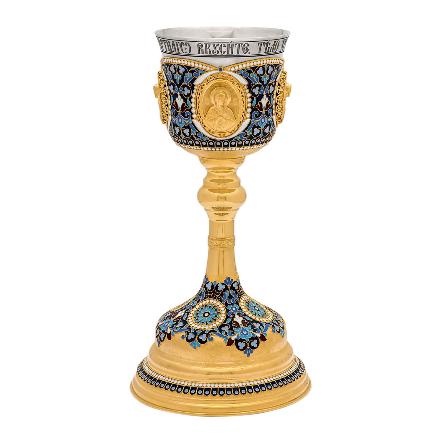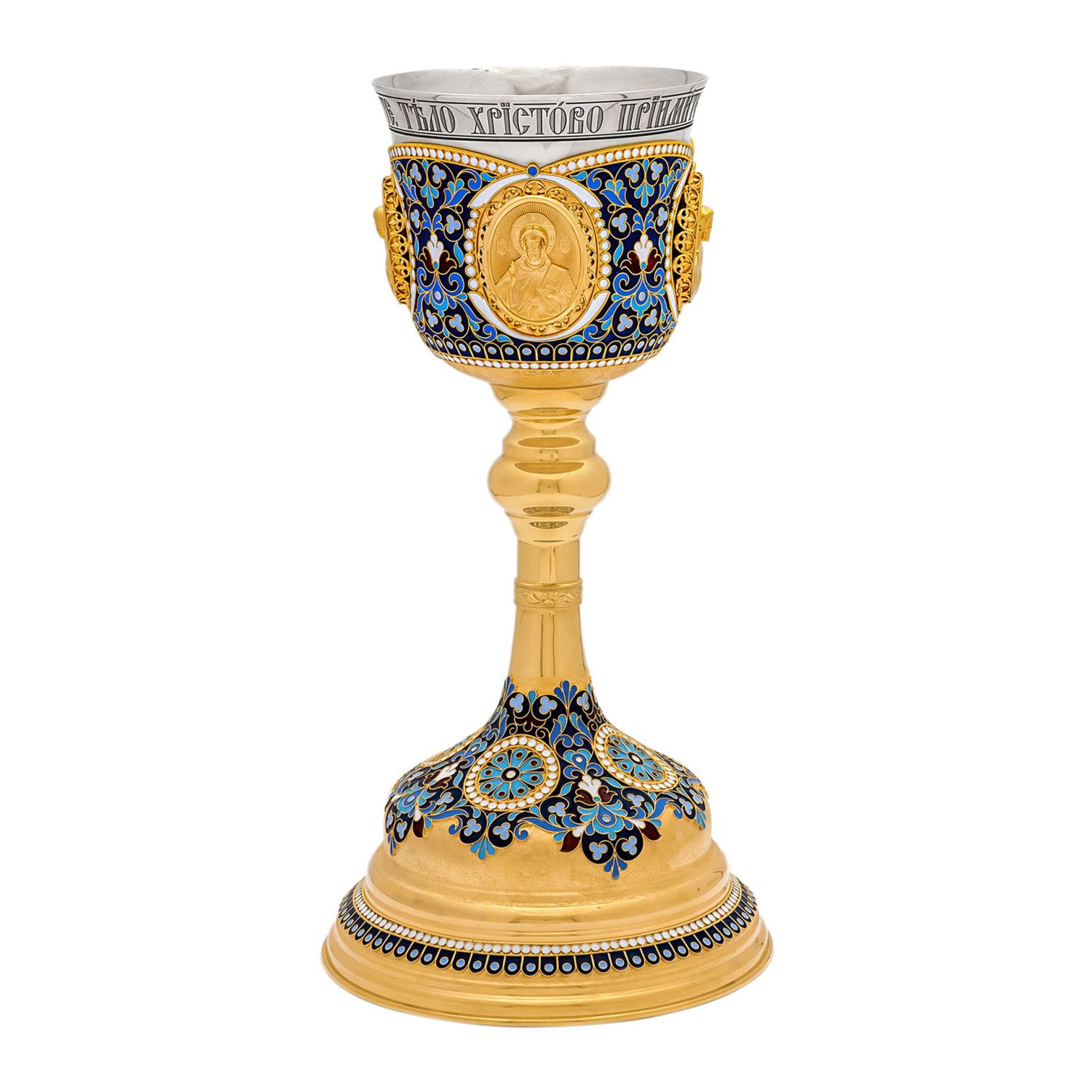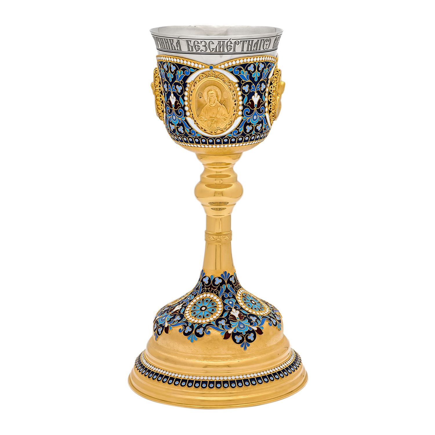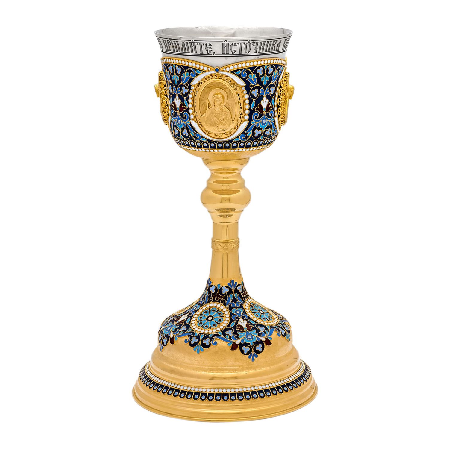Потир 1.0л 4-литьевых лика, филигрань, эмаль / песочные часы / золочение / мельхиоровый стакан
