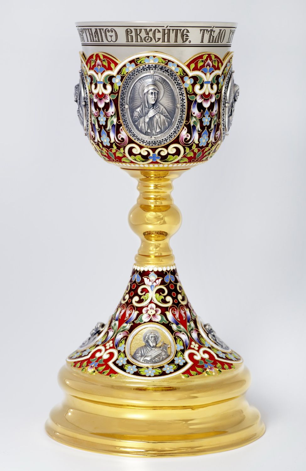 Потир 1.0л 8-литьевых ликов, филигрань, эмаль, роспись, золочение, мельхиоровый стакан
