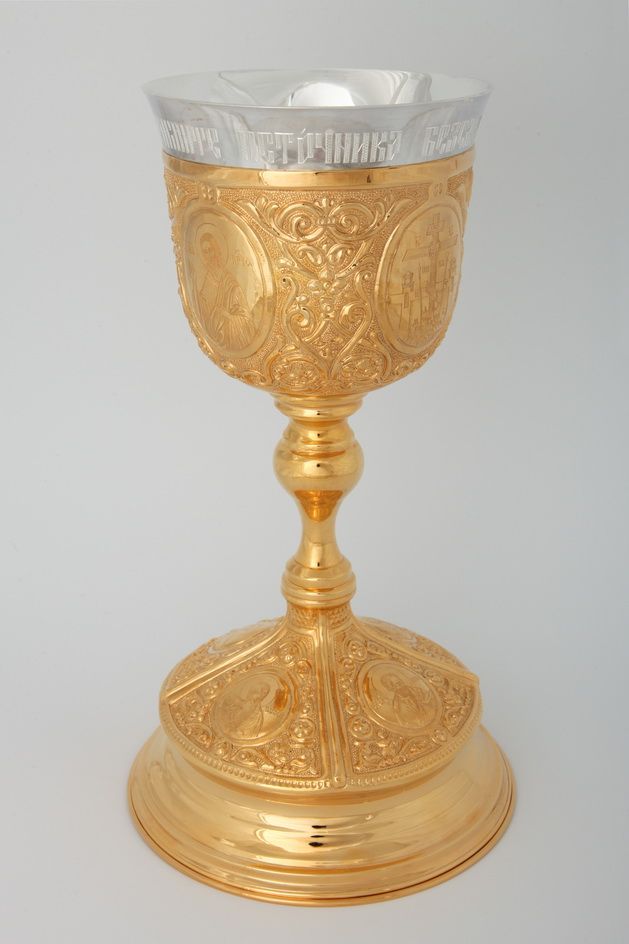 Потир 1.0л гальванопластика №15 / золочение / серебряный стакан (УИН)