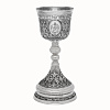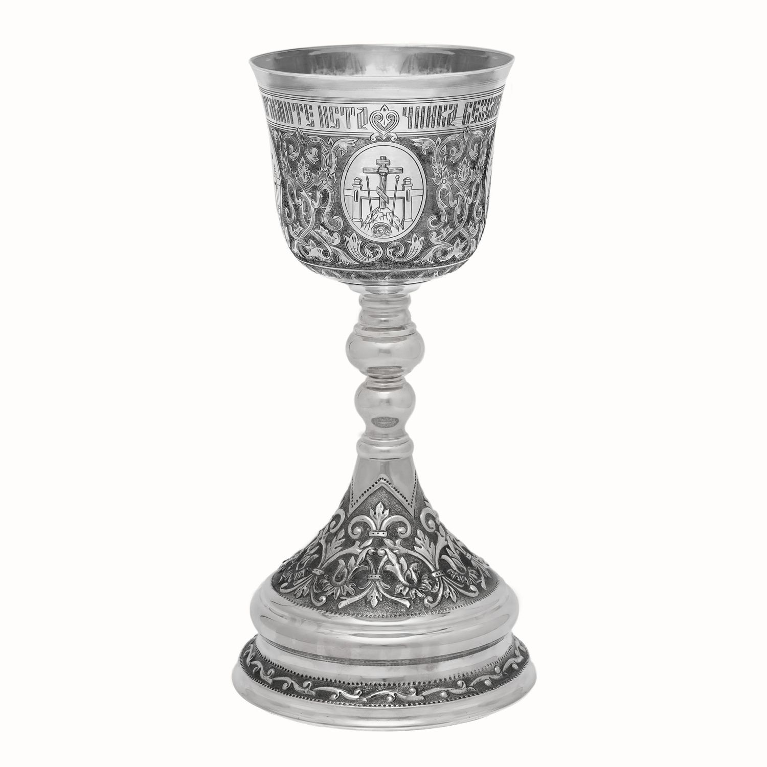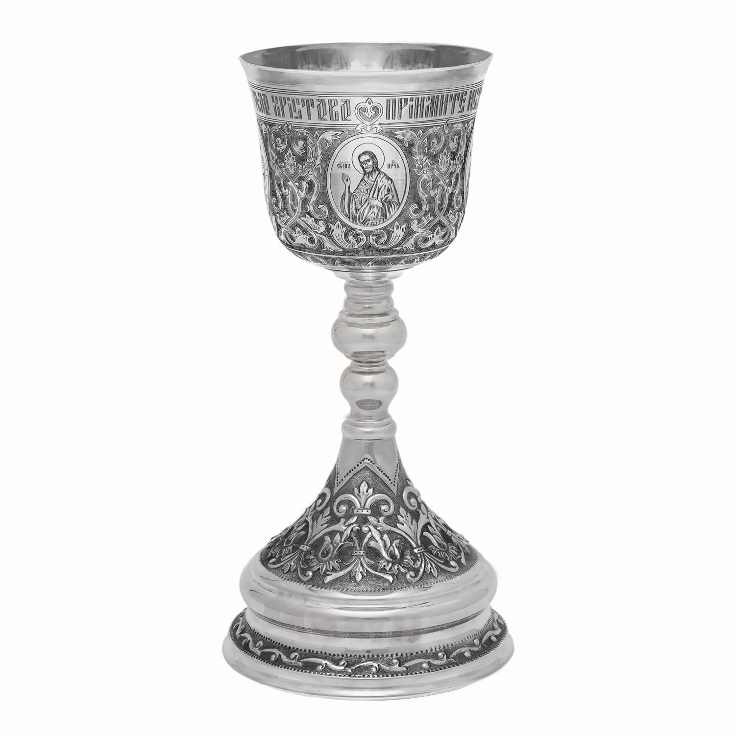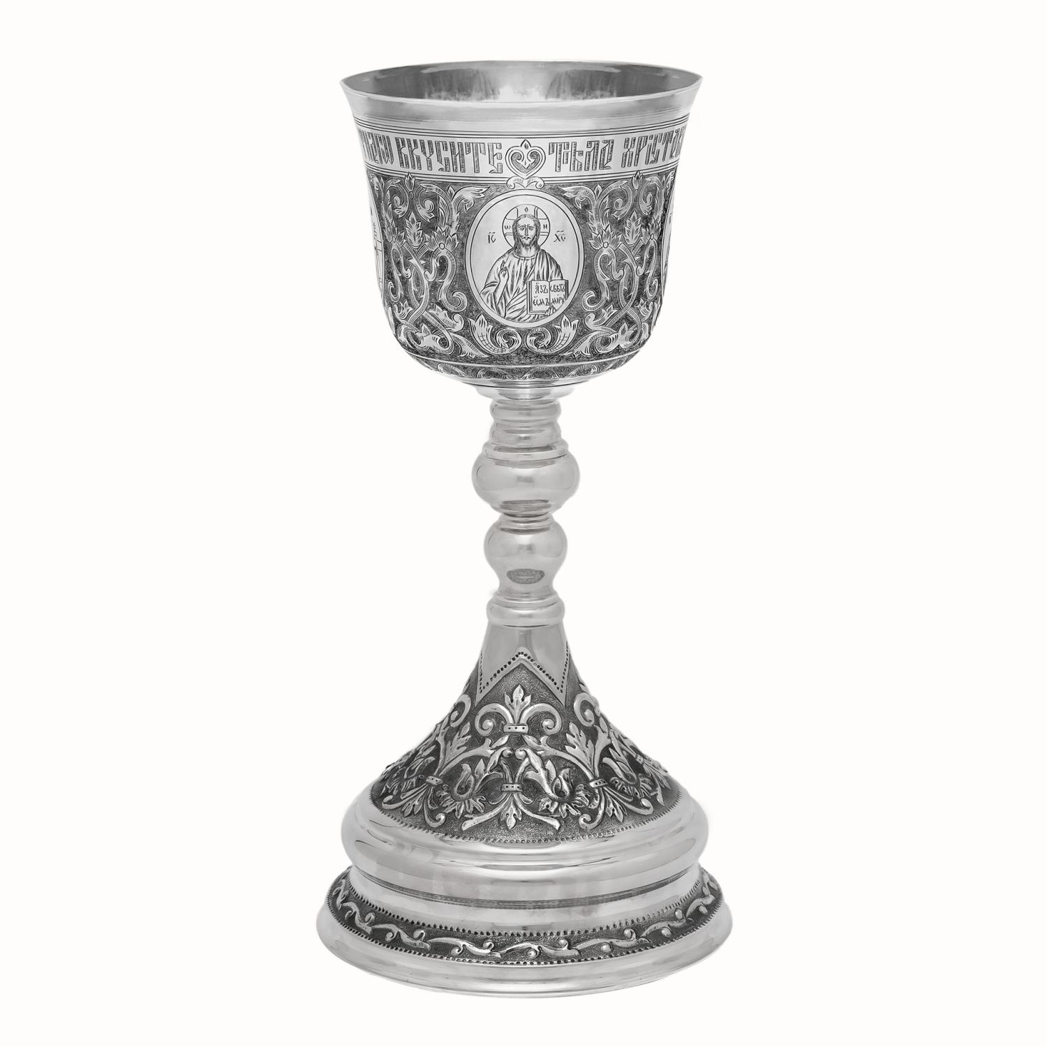 Потир 1.0л ручная гравировка с 4мя-ликами, чеканка / поддон 1, 5л потира / серебро (УИН)