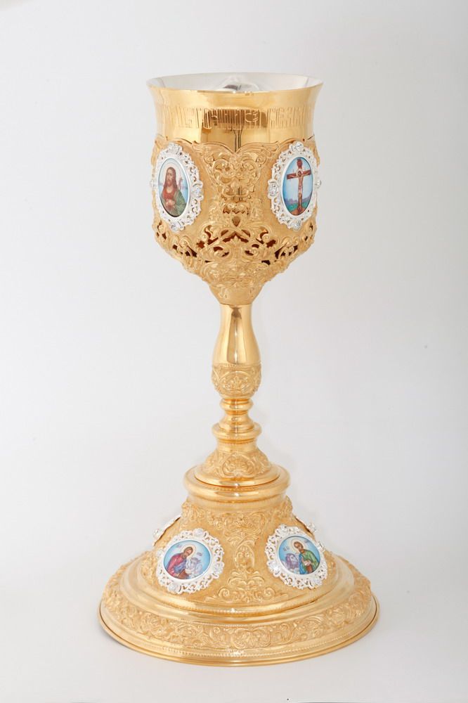 Потир 1.5л 8-финифтей, чеканка №10 / золочение / серебро (УИН)