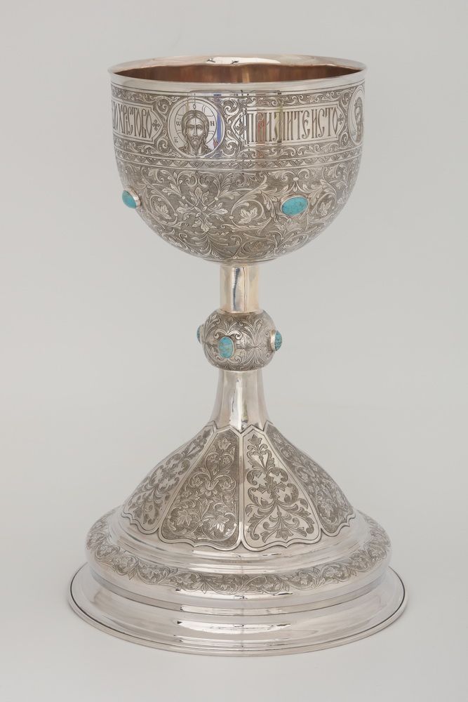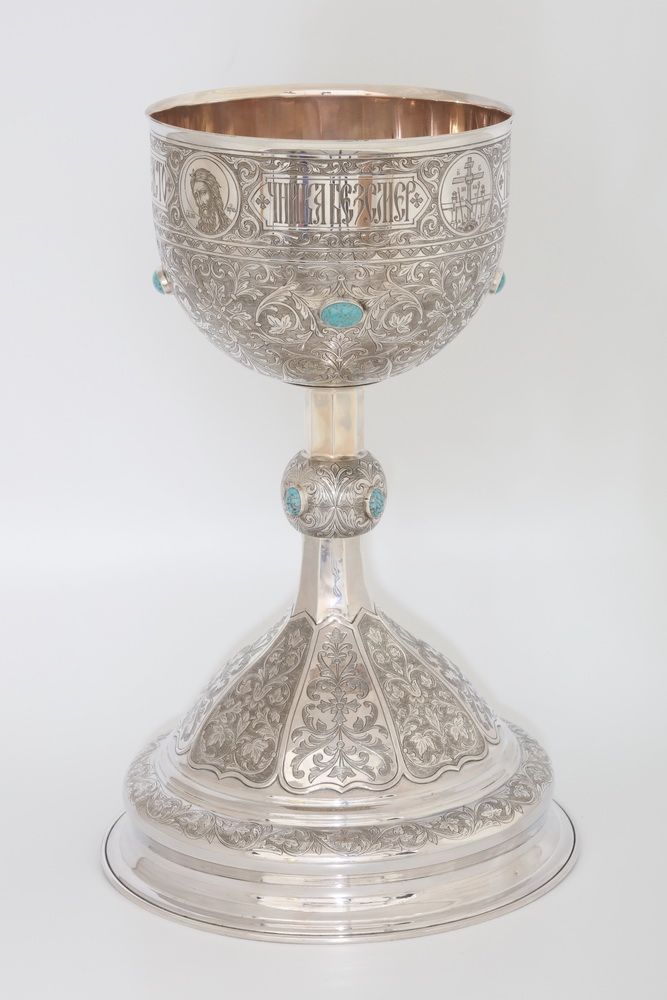 Потир 1.5л ручная гравировка с 4мя-ликами, чеканка ложек №11 серебро (УИН)
