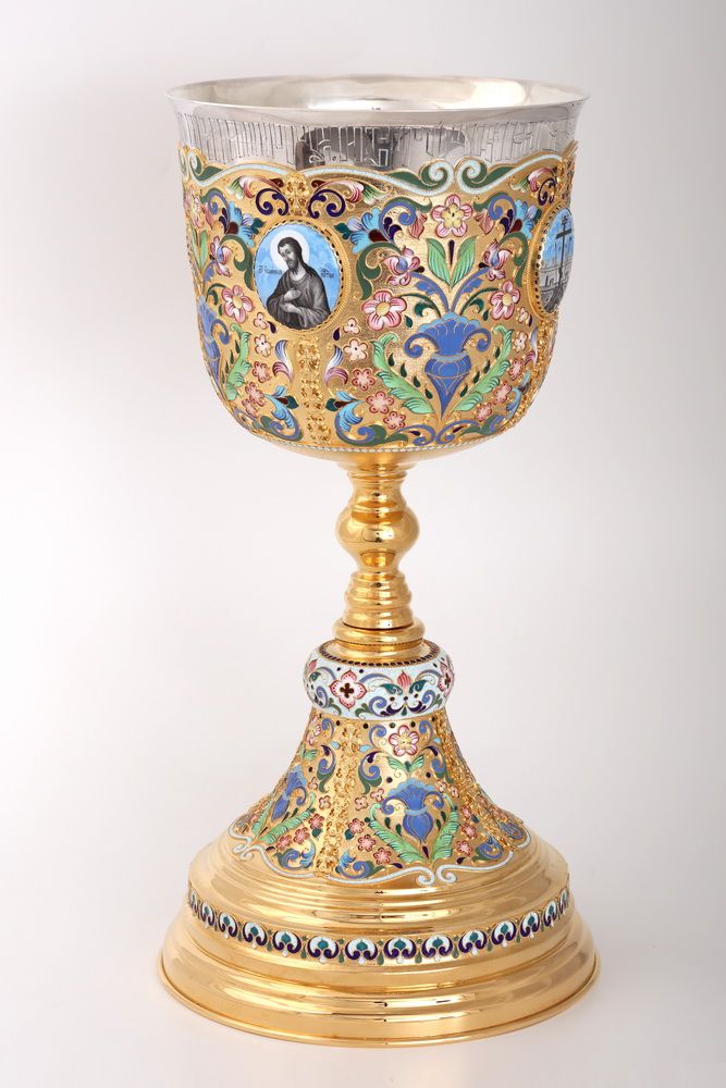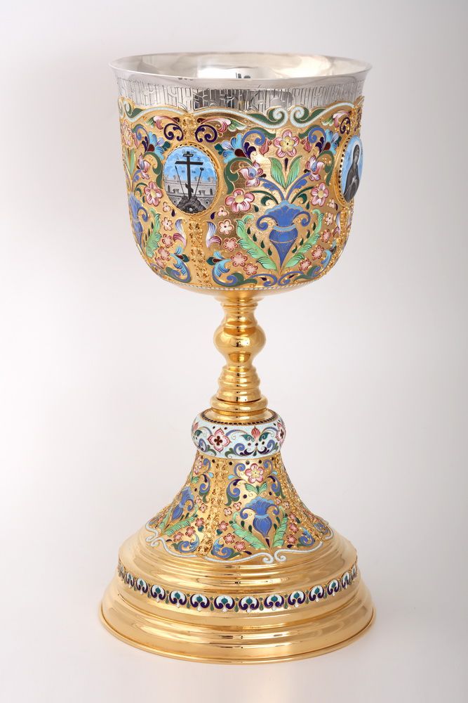 Потир 3.0л 4-финифти, филигрань, эмаль, роспись / золочение / серебряный стакан (УИН)