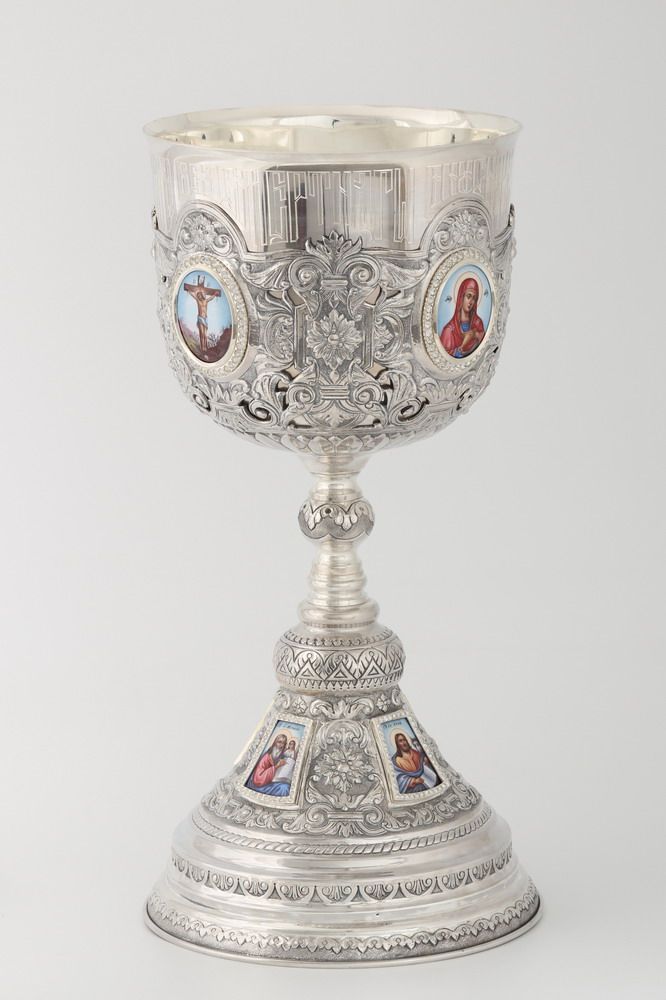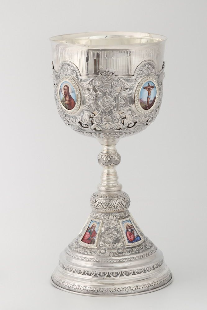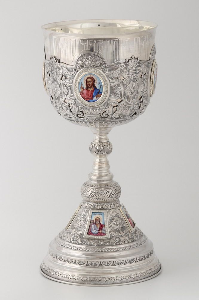 Потир 3.0л 8-финифтей, чеканка / поддон 2, 0л потира / серебро (УИН)