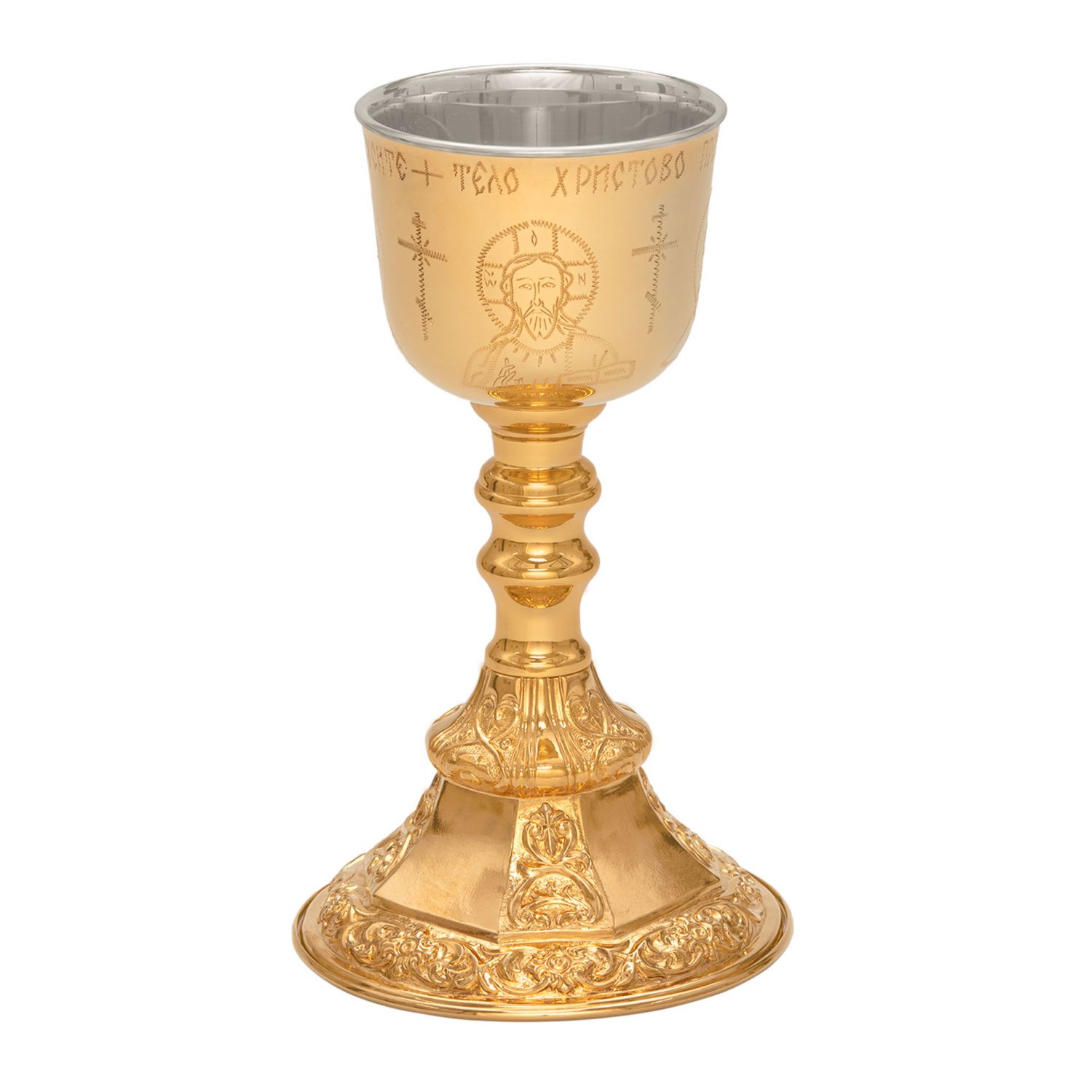 Потир-чаша 0.4 с вкладышем (нерж. сталь) г / пластика ручная гравировка золочение