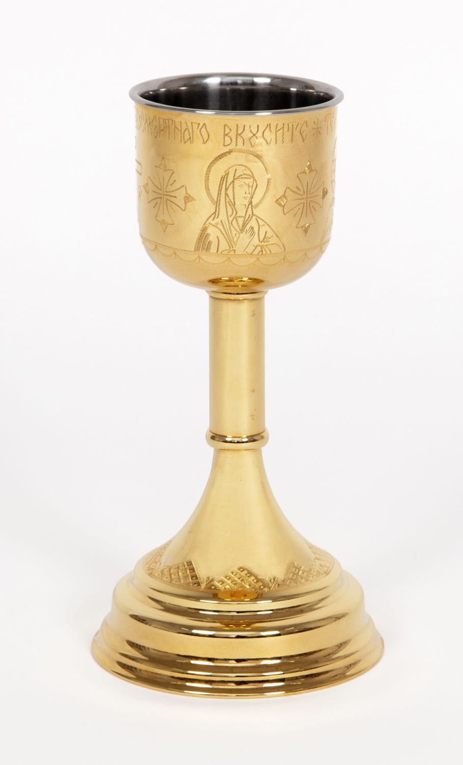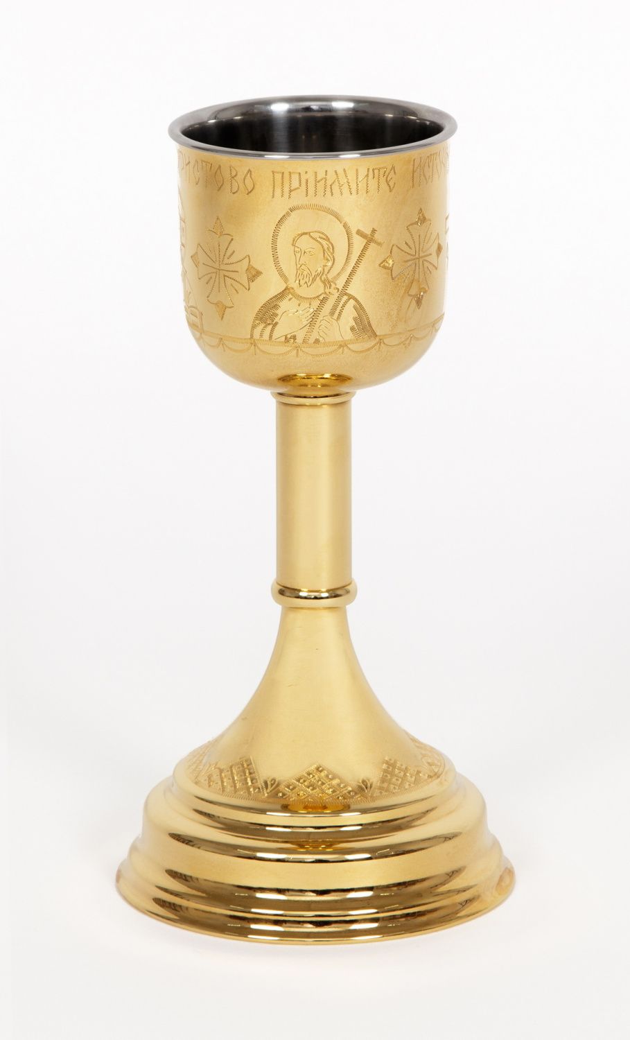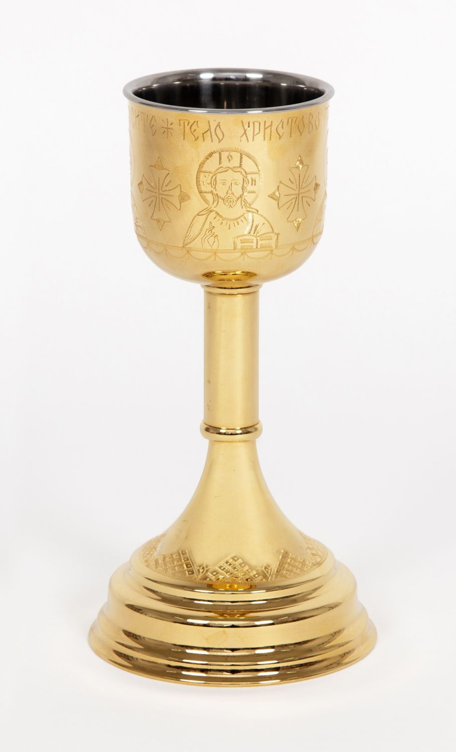 Потир-чаша №2 0, 5л конусной с вкладышем (нерж. сталь) ручная гравировка золочение