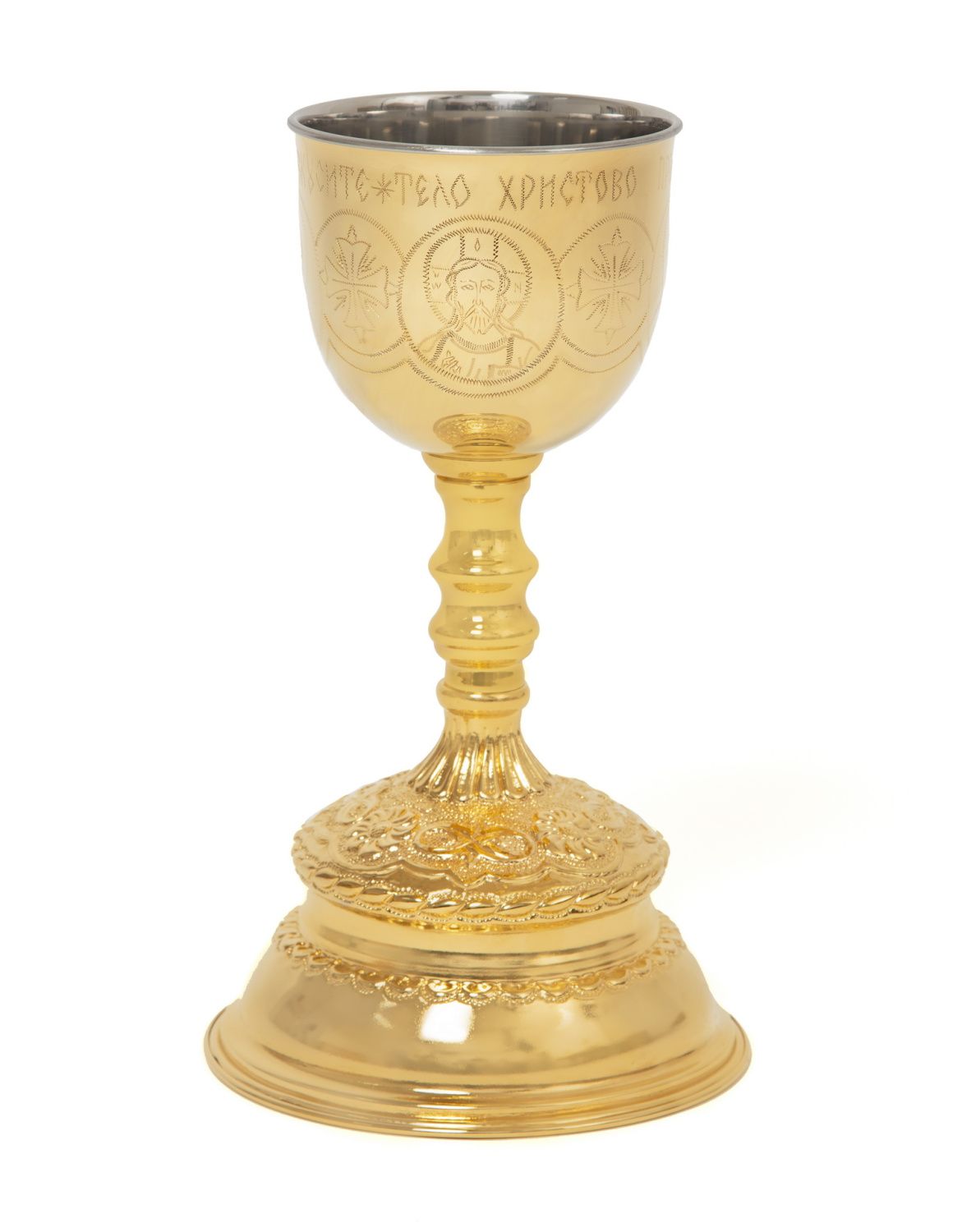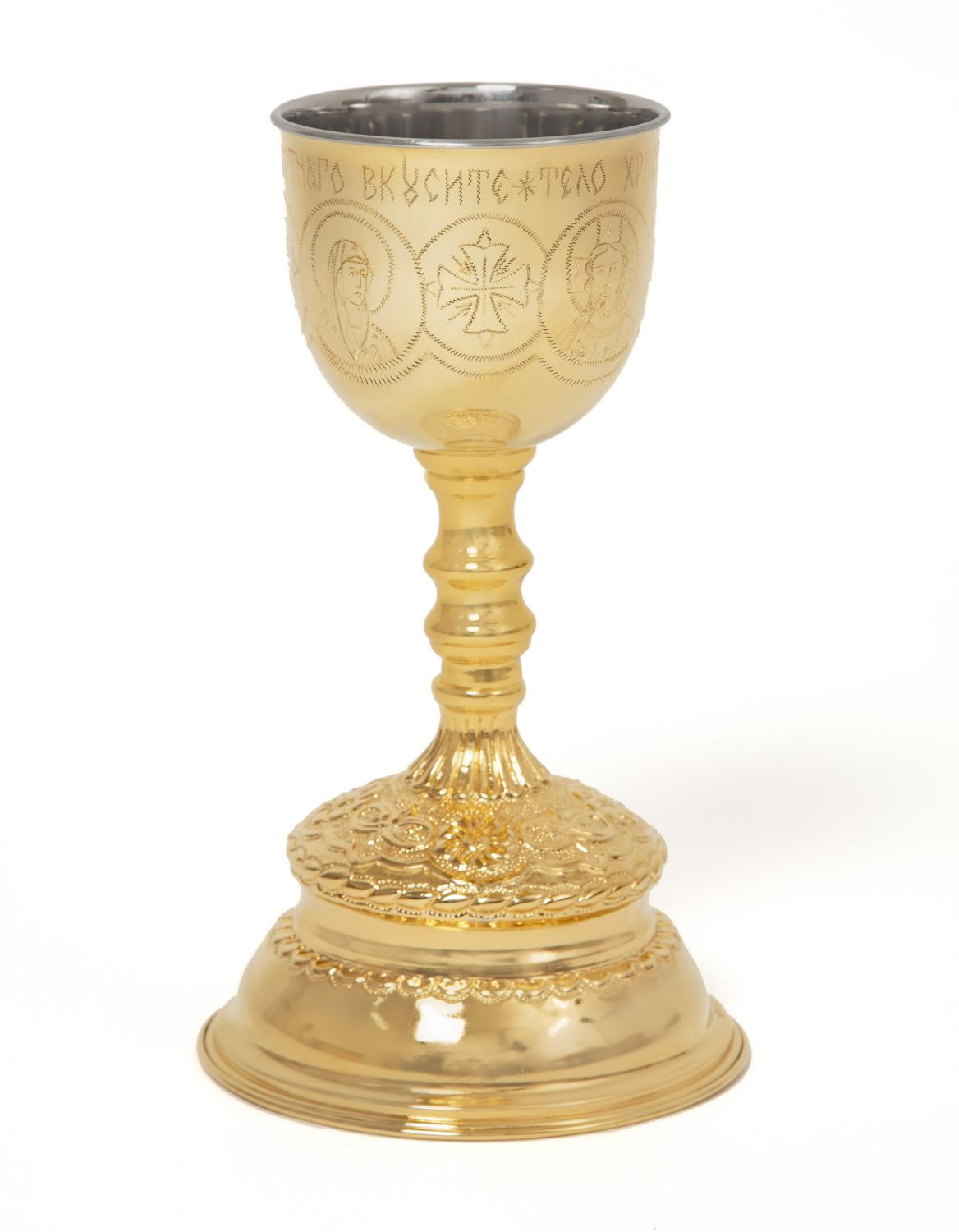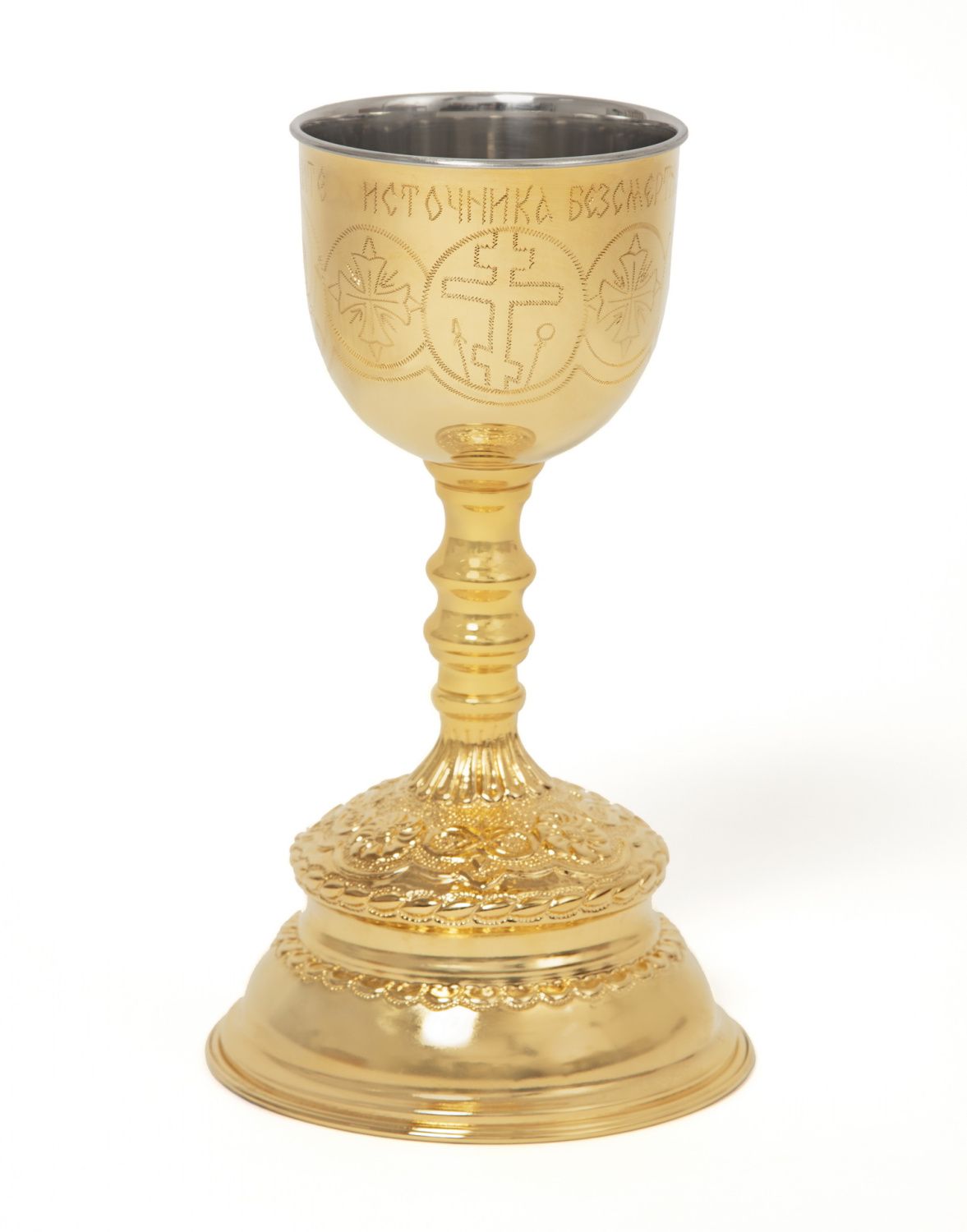 Потир-чаша №2 0, 75л с вкладышем (нерж. сталь) г / пластика ручная гравировка золочение