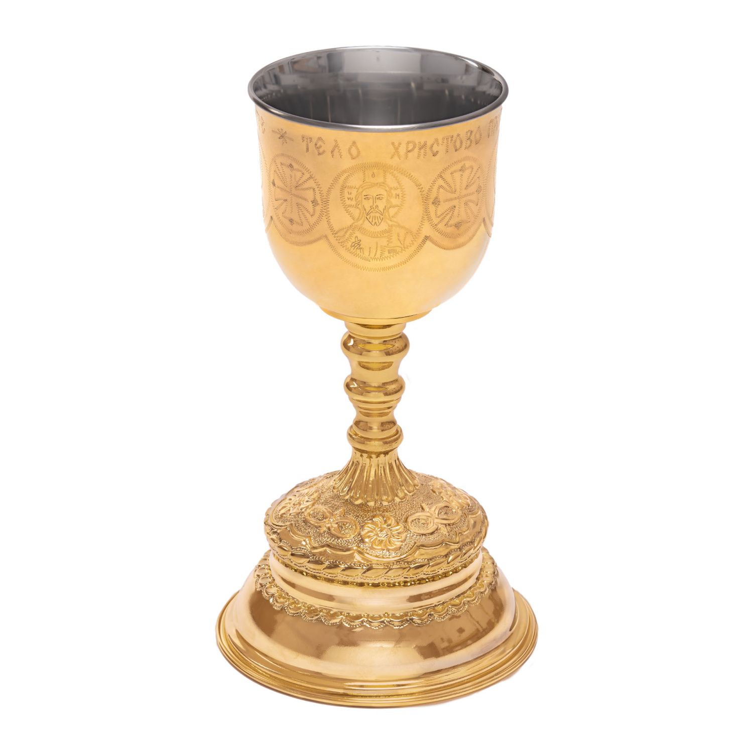 Потир-чаша №2 1, 0л с вкладышем (нерж. сталь) г / пластика ручная гравировка золочение