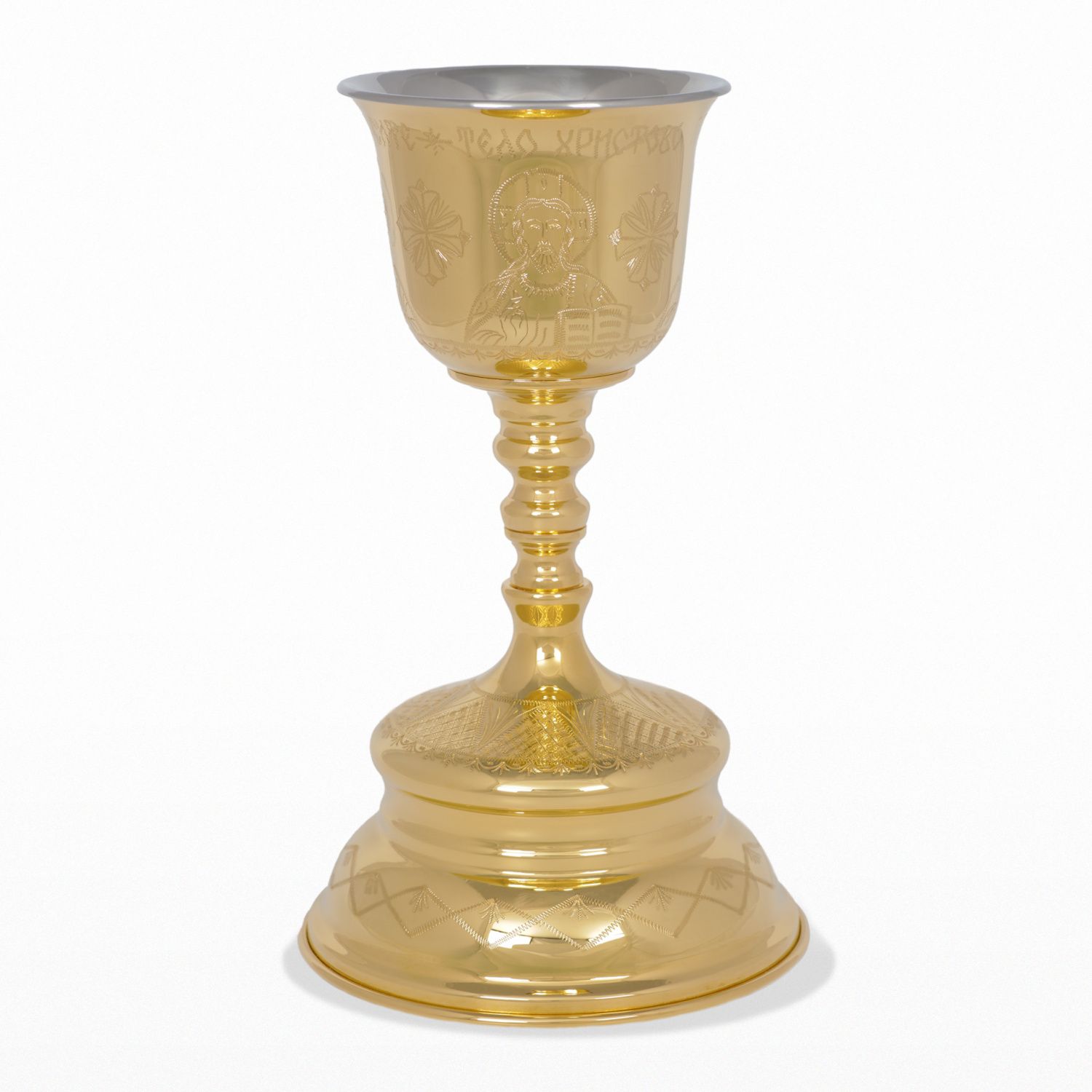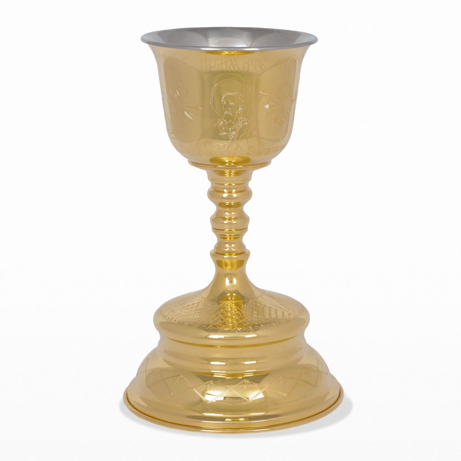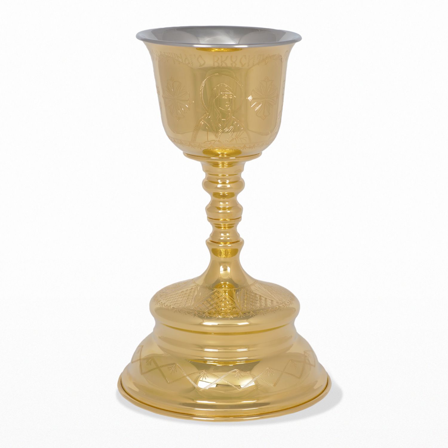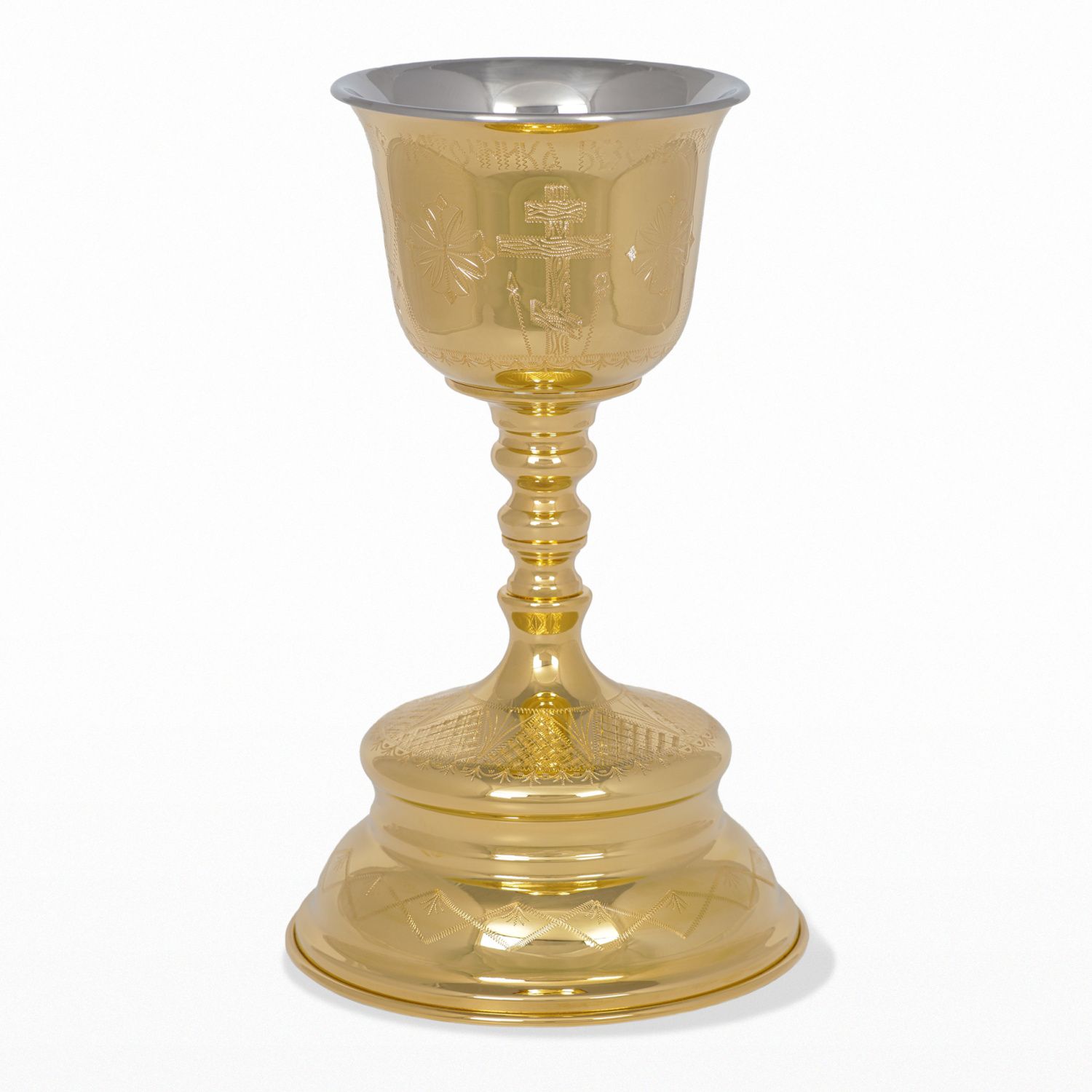 Потир-чаша №4 0, 5л с вкладышем (нерж. сталь) ручная гравировка золочение