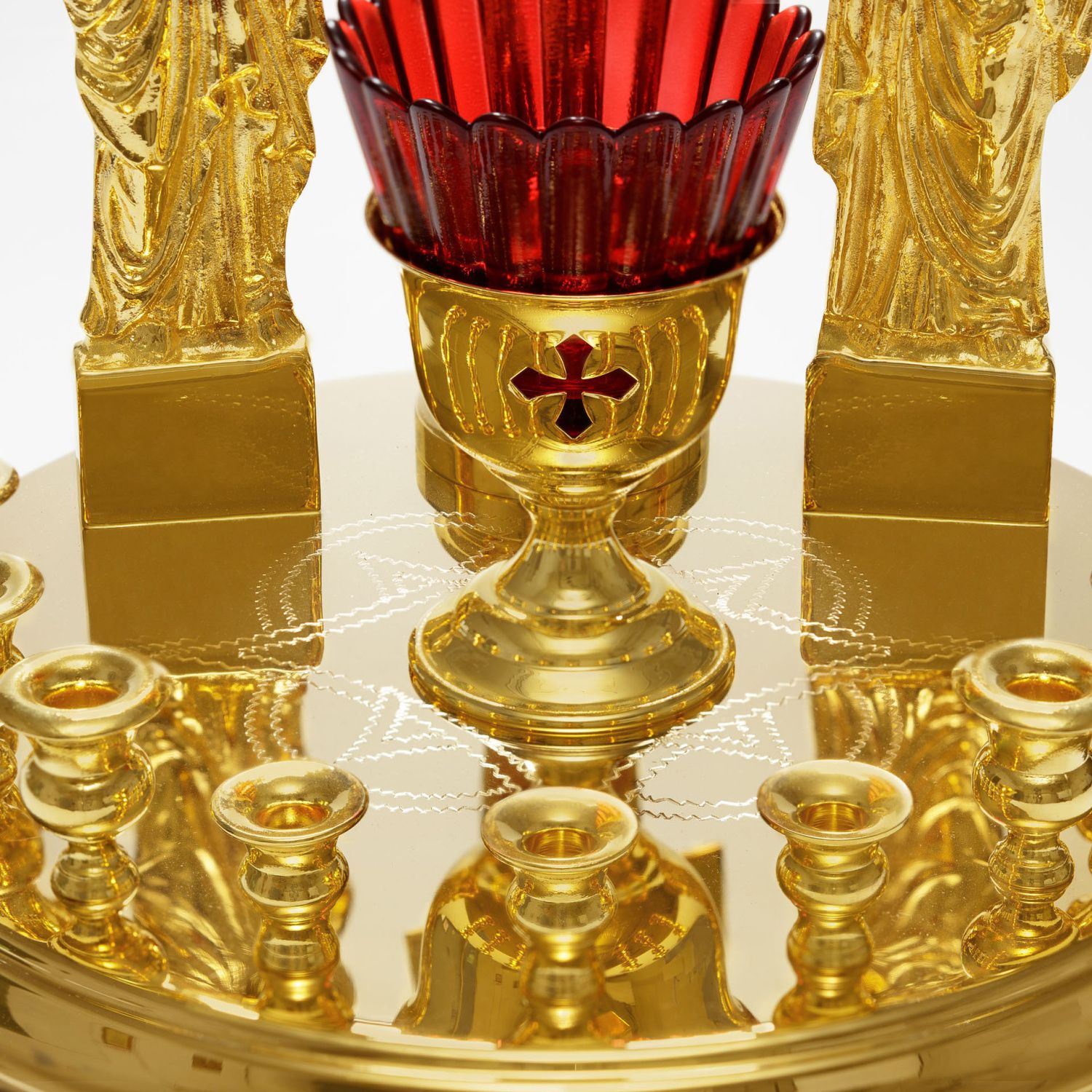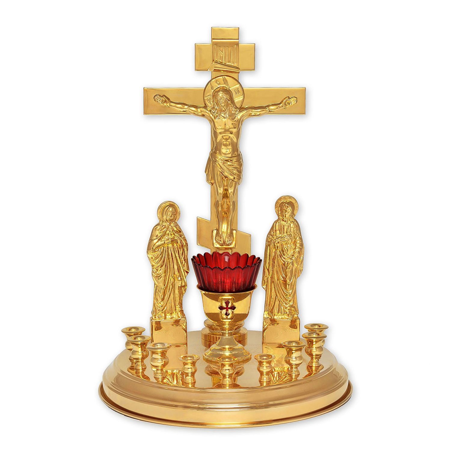 Канун — это стол с мраморной или металлической доской, на которой расположены ячейки для свечей. На кануне стоит Распятие со Спасителем и с предстоящими Пресвятой Богородицей и апостолом Иоанном Богословом.