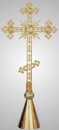 Крест на купол №3 ажурный средний с шаром и конусом золочение