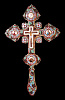 Крест напрестольный №4 5-финифтей, филигрань, эмаль, роспись, хим.гравировка / золочение