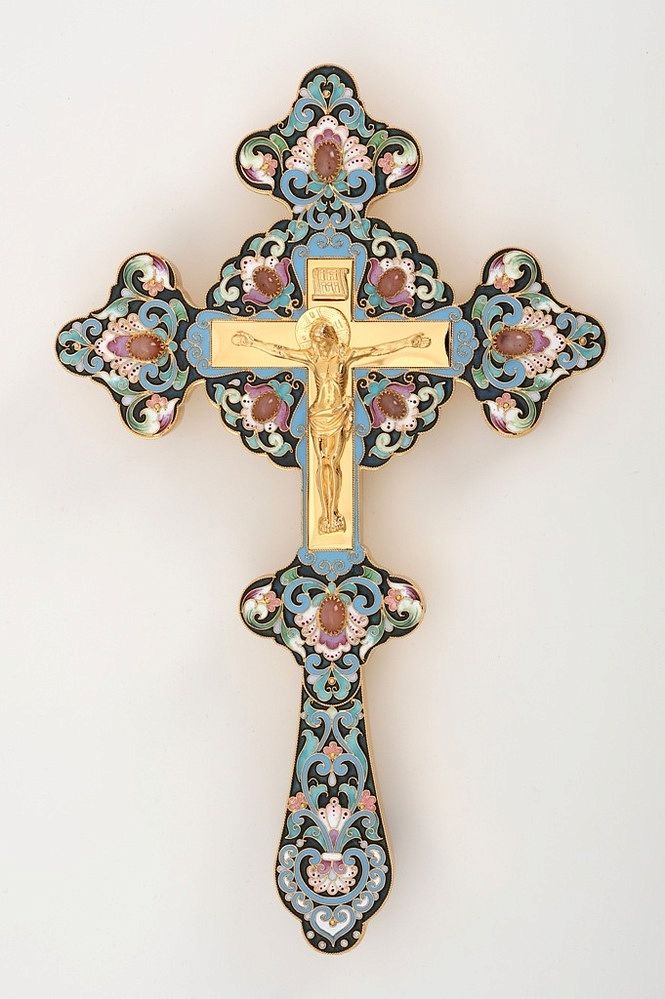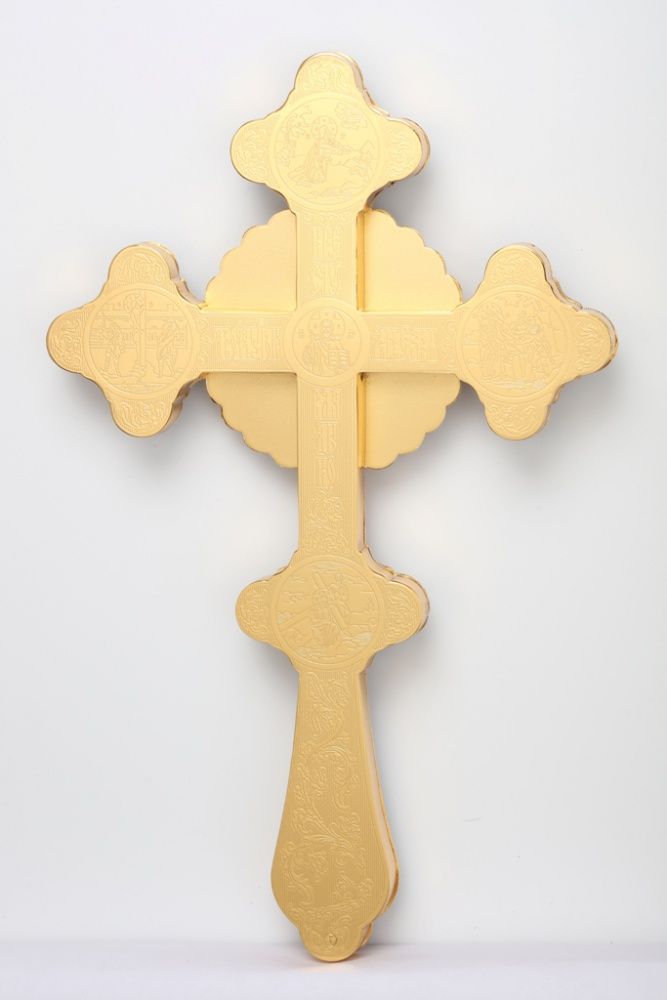 Крест напрестольный фигурный литьевое распятие, роспись / золочение