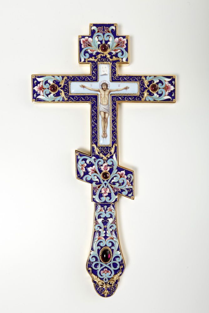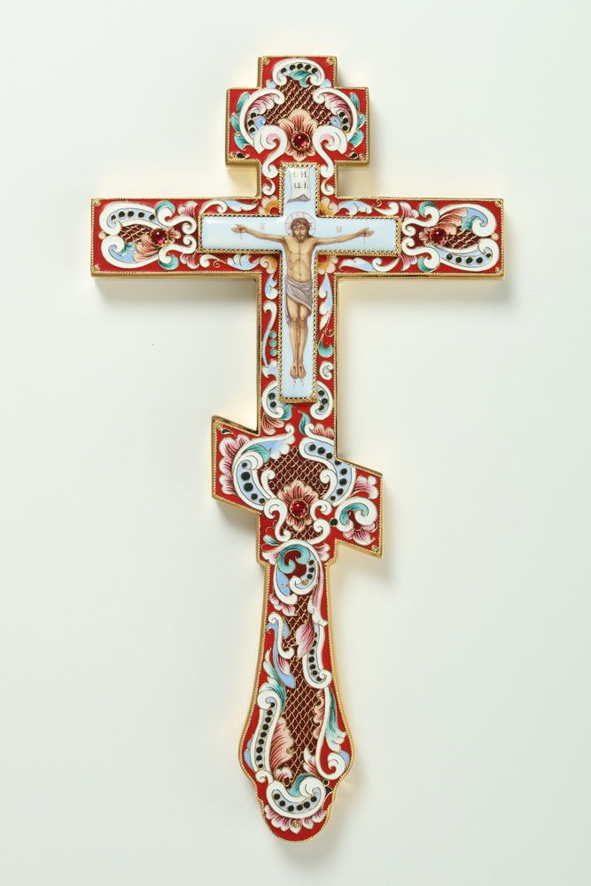 Крест напрестольный филигрань, эмаль, роспись, финифть / золочение