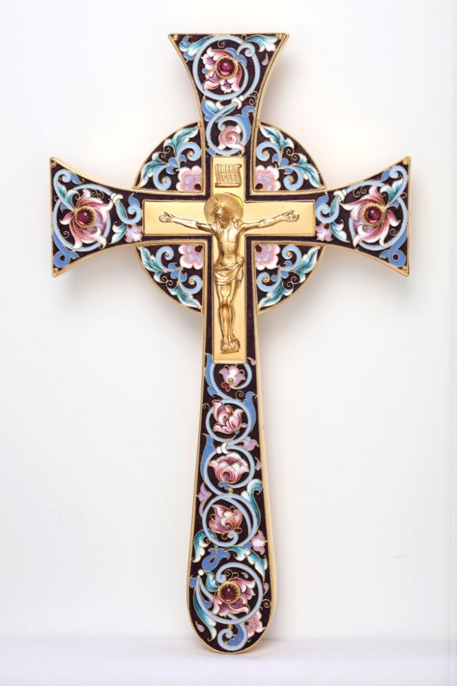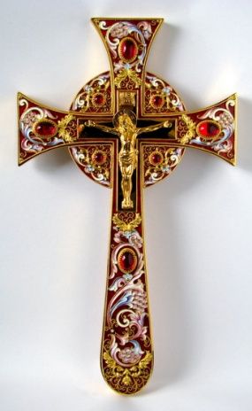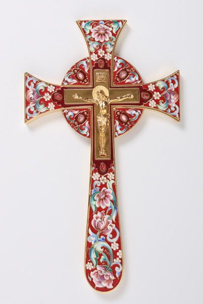 Крест напрестольный мальтийский литьевое распятие, роспись / золочение