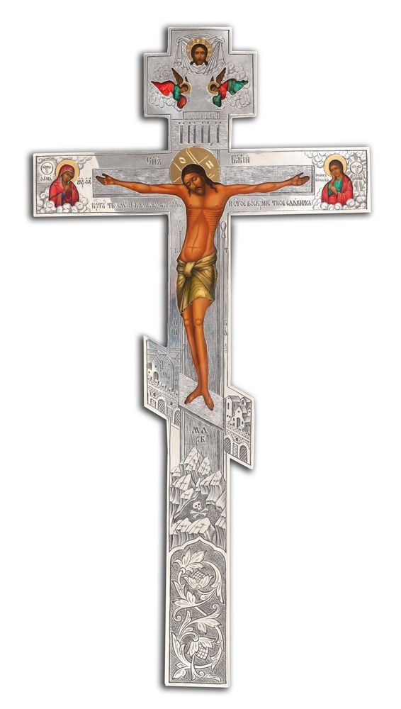 Крест напрестольный №11 живопись, гравировка / золочение / серебро (УИН)