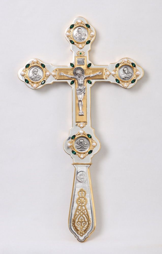 Крест напрестольный №8 литьевые лики, гравировка / золочение / серебро (УИН)
