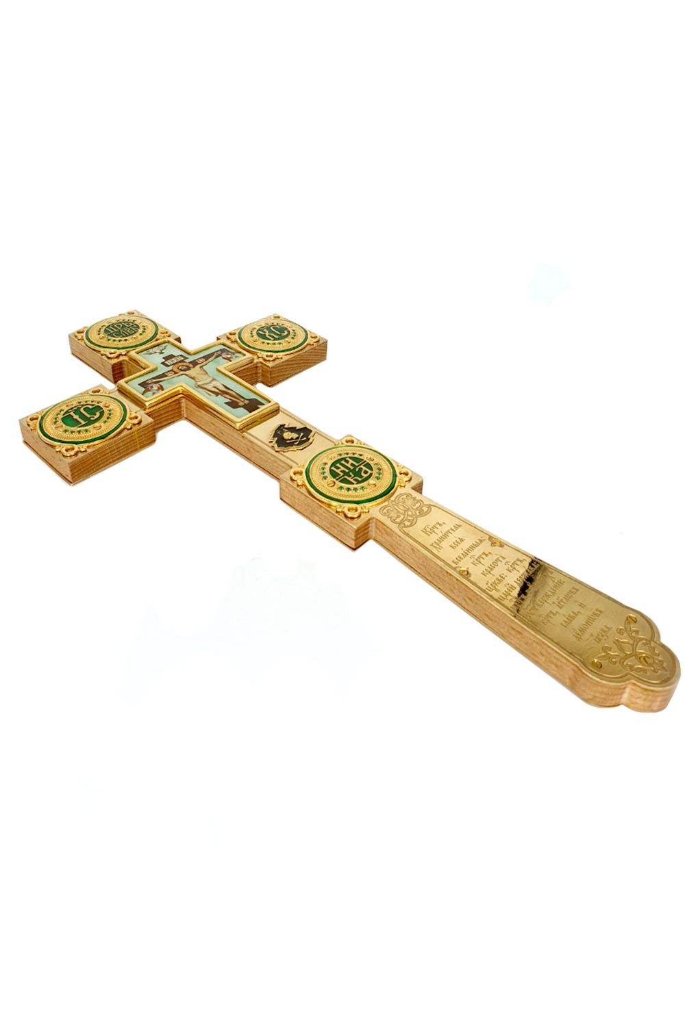 Крест Напрестольный латунный в позолоте, с эмалью и латунным принтом