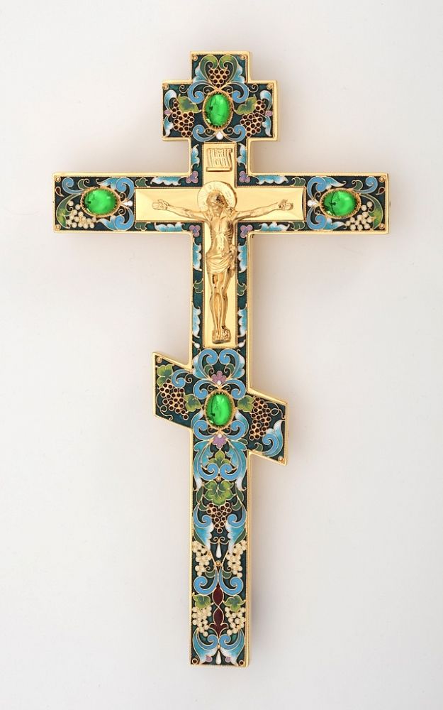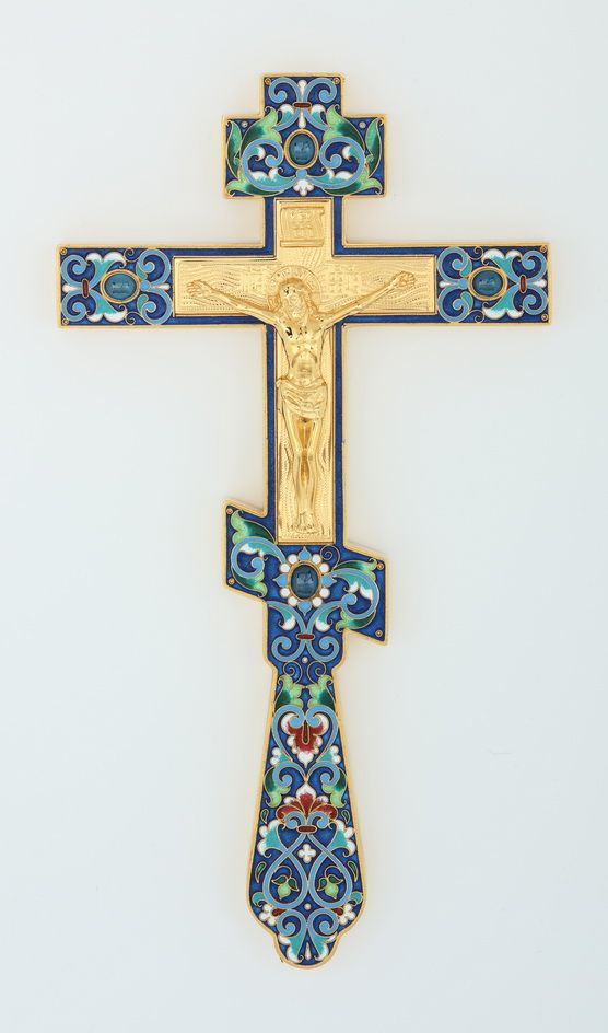 Крест напрестольный малый литье, филигрань, эмаль, гравировка / золочение / серебро (УИН)