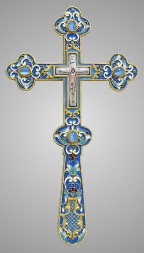 Крест напрестольный водосвятный финифть, филигрань, эмаль серебро (УИН)