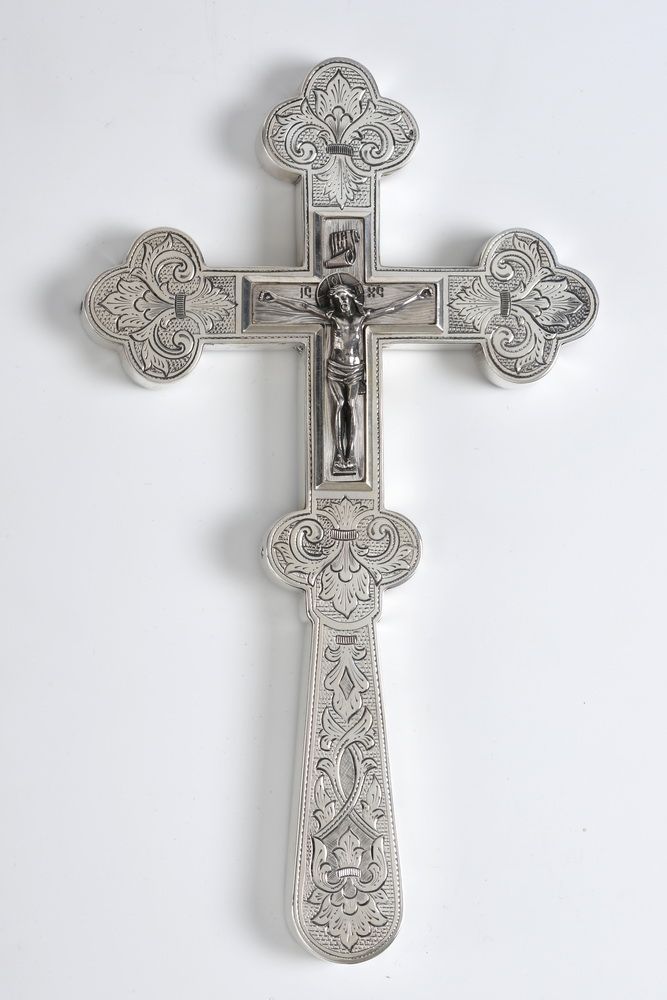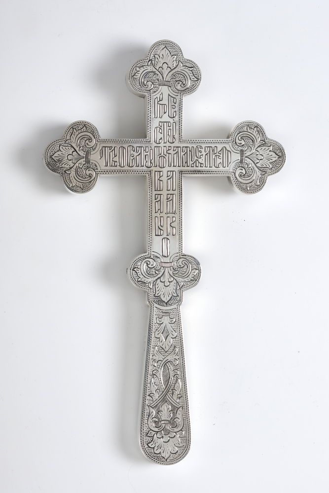Крест напрестольный водосвятный ручная гравировка серебро (УИН)