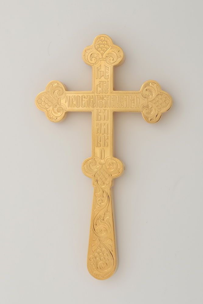 Крест напрестольный водосвятный ручная гравировка / золочение / серебро (УИН)